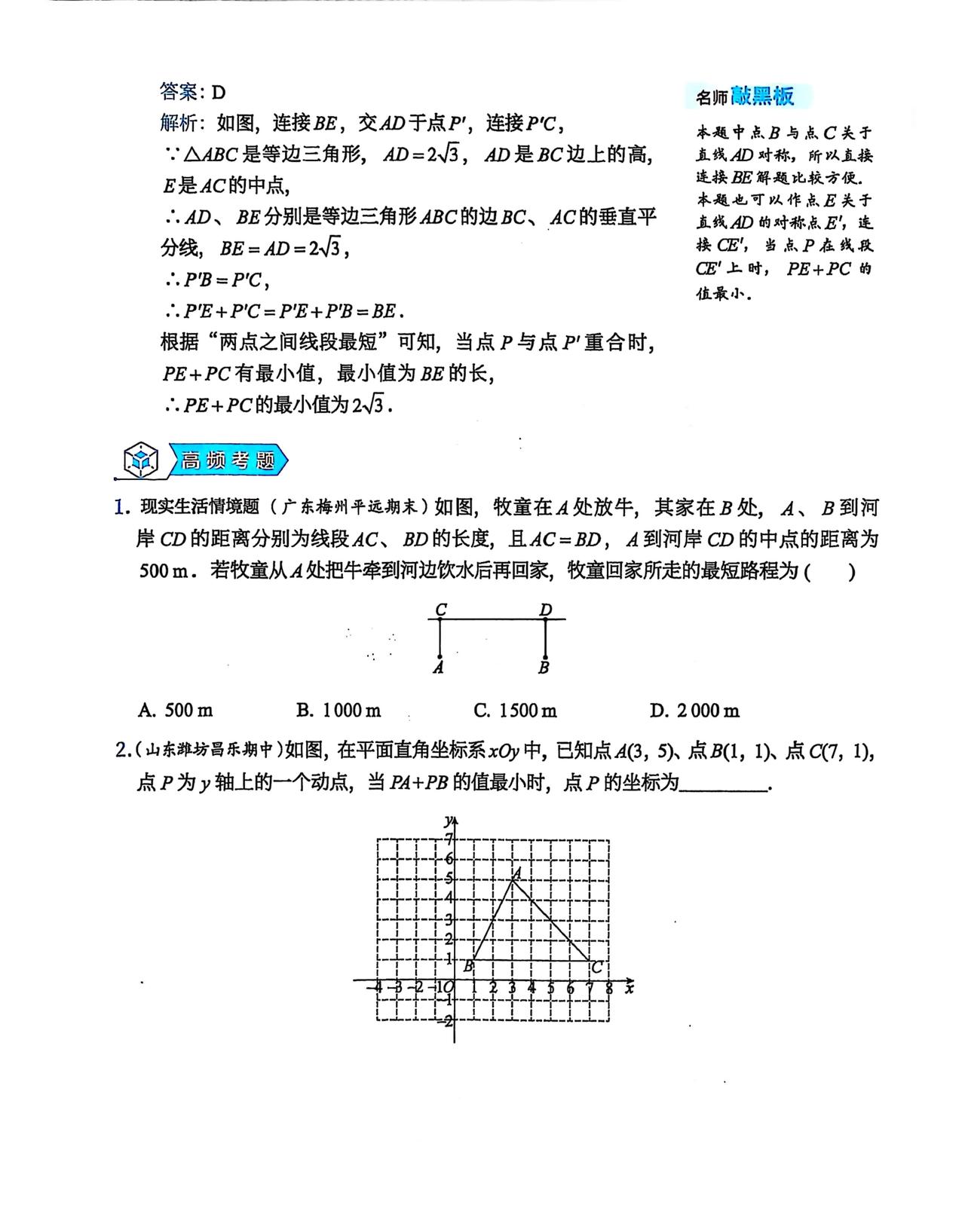 中考数学——将军饮马最值模型总结