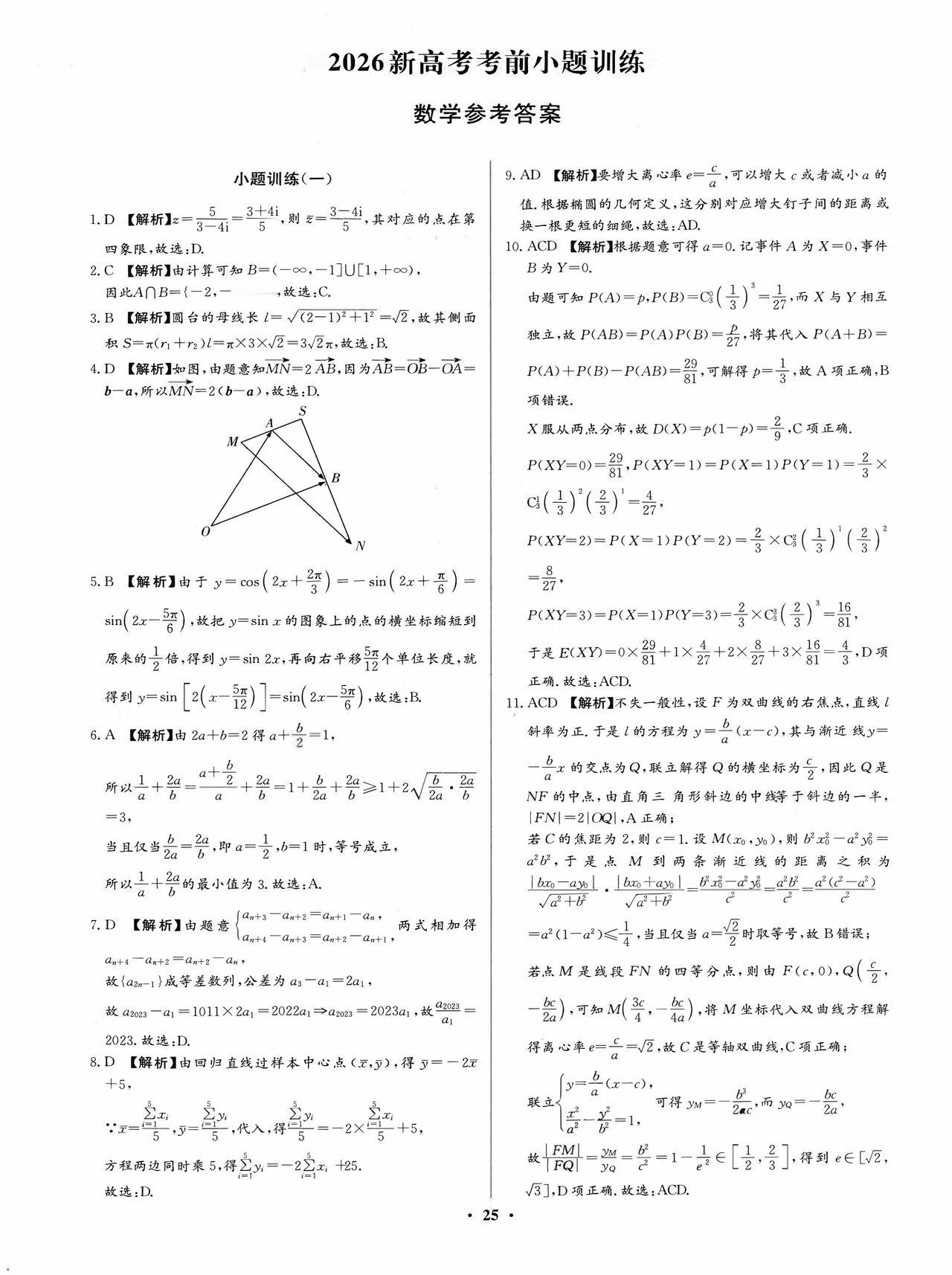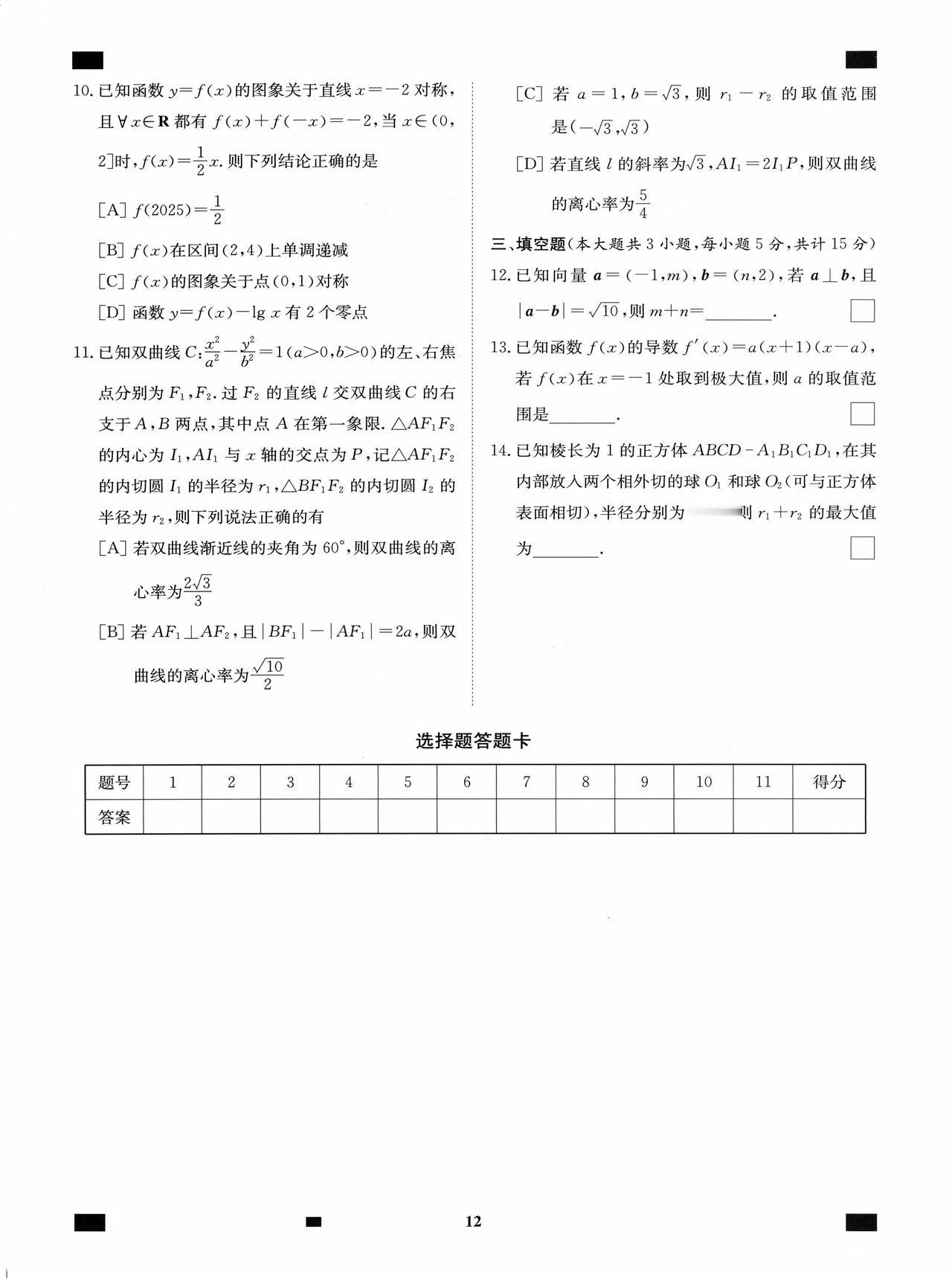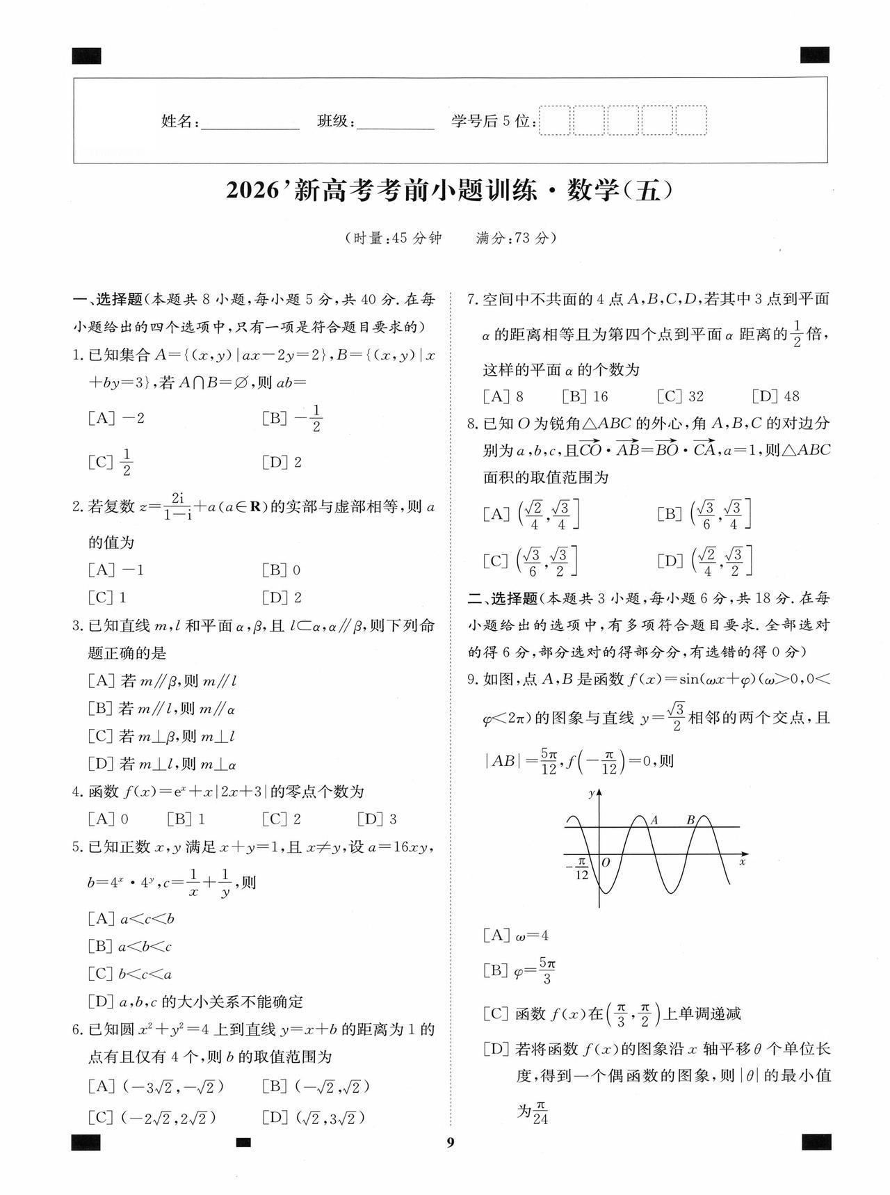 新高考数学——考前12套小题训练题目+答案