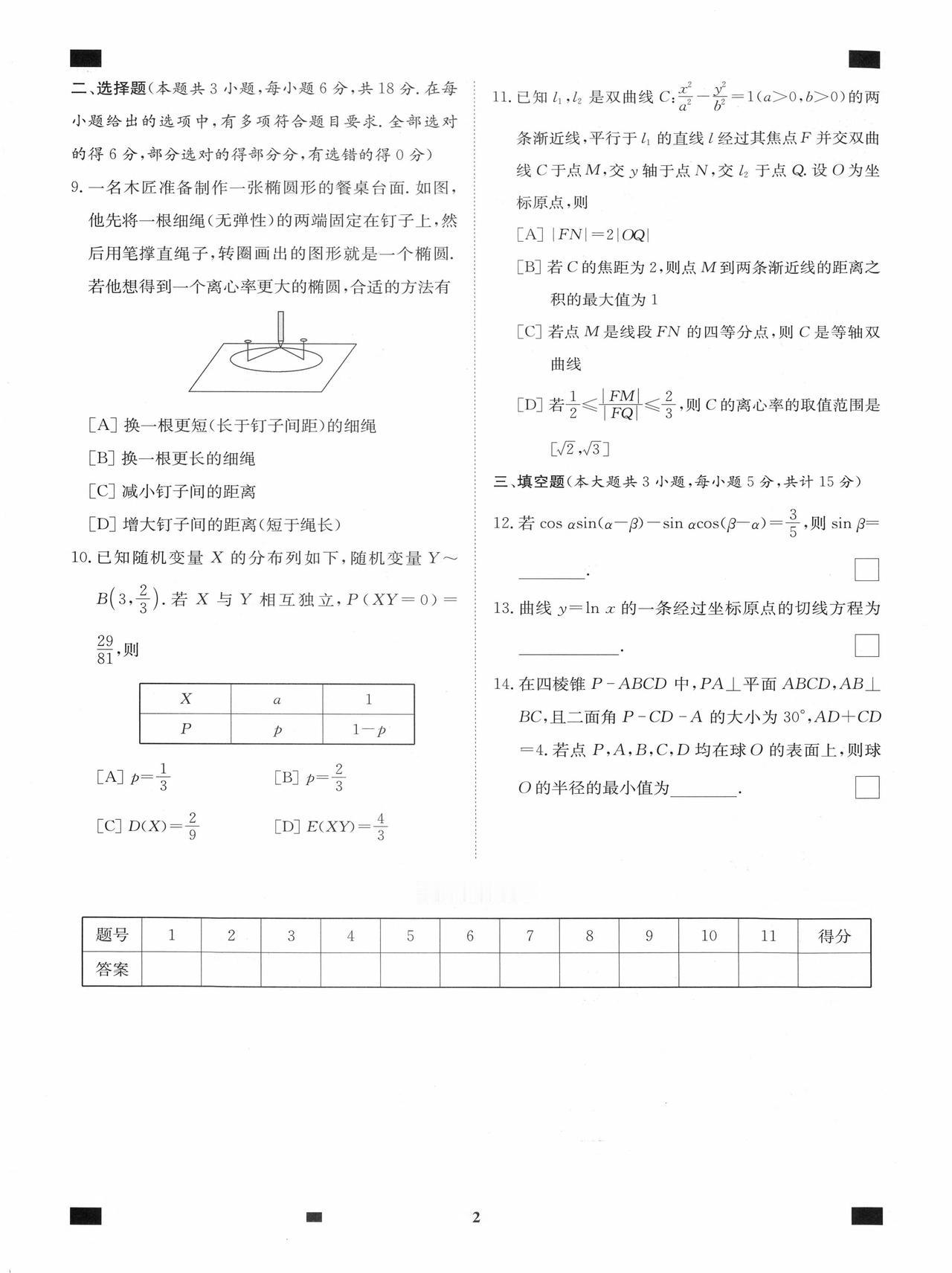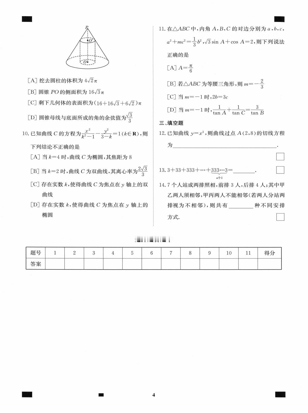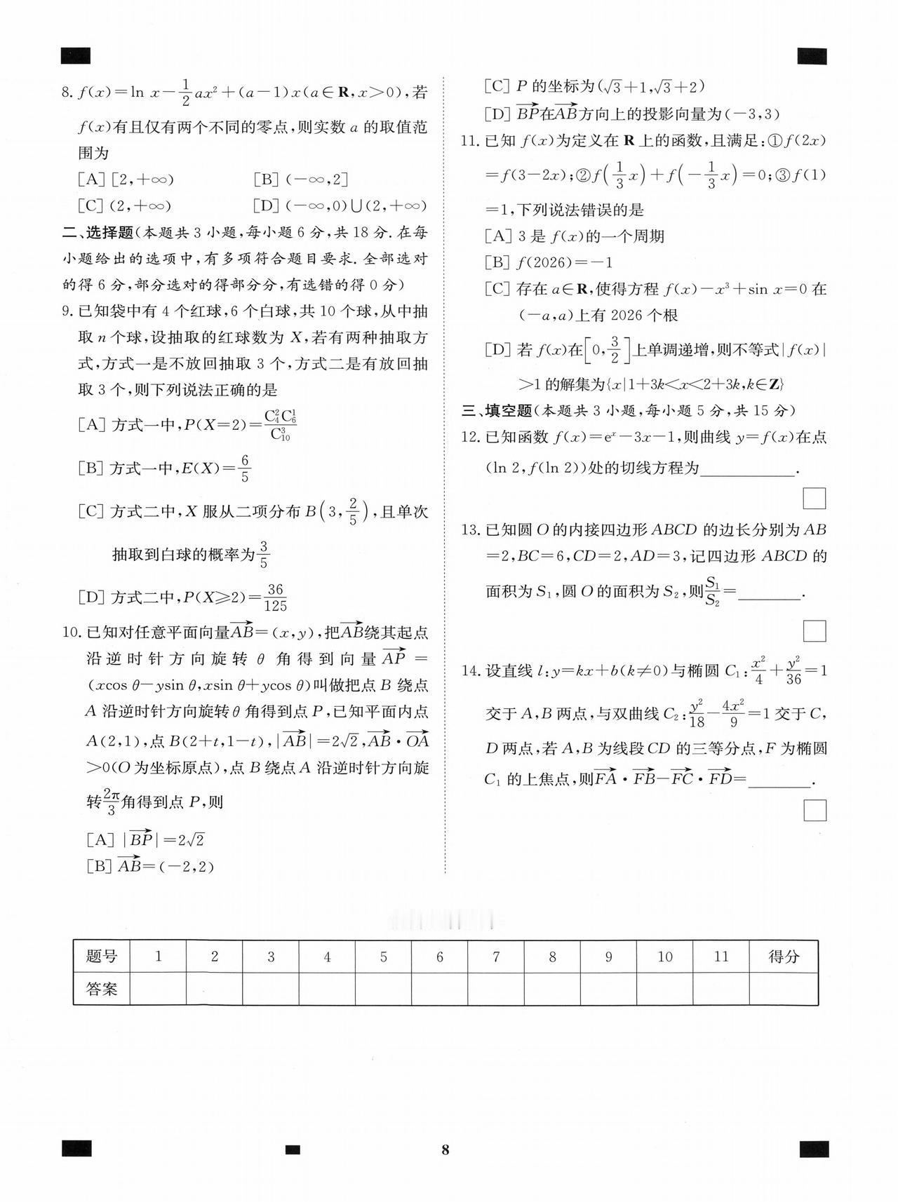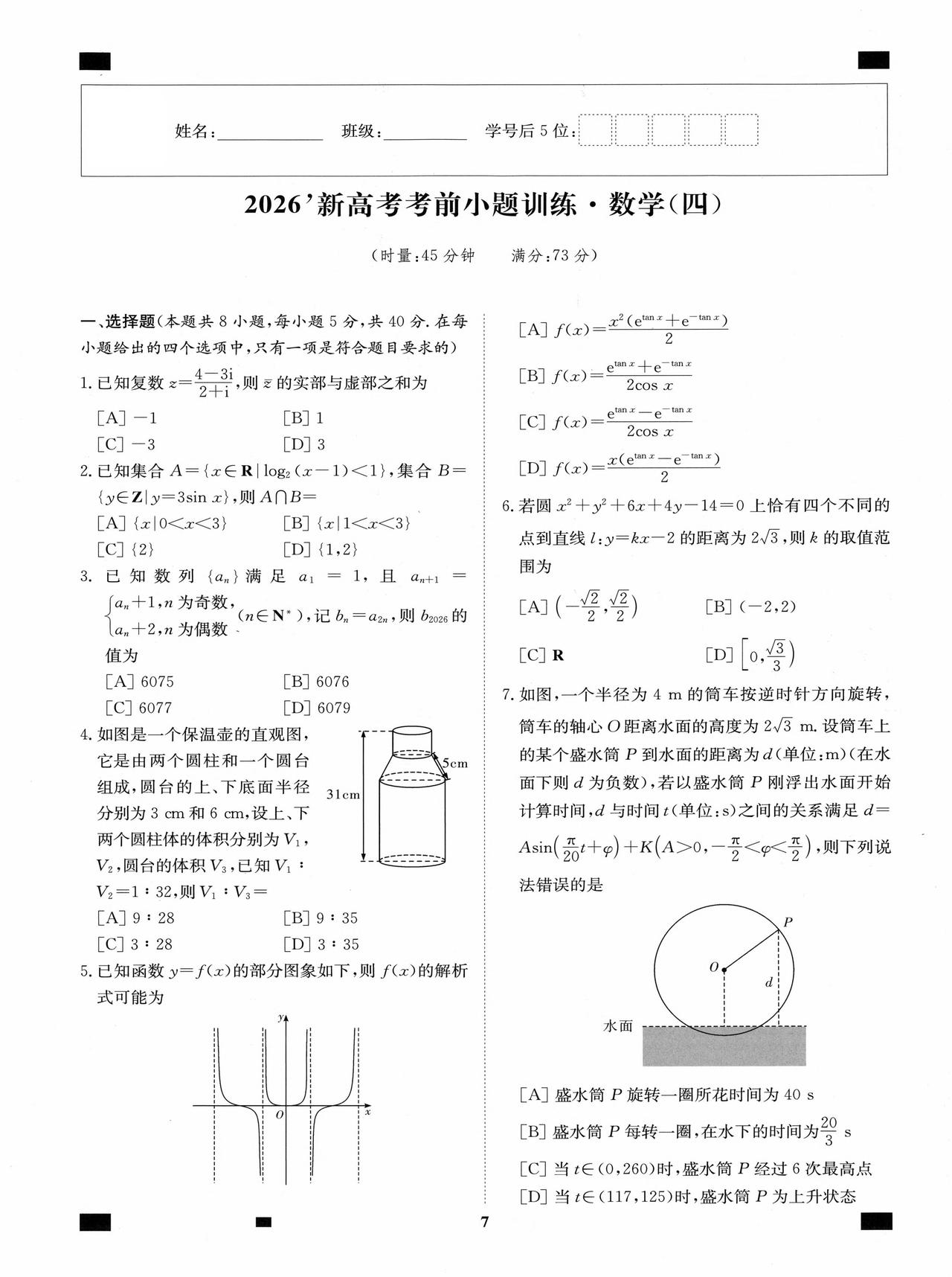 新高考数学——考前12套小题训练题目+答案