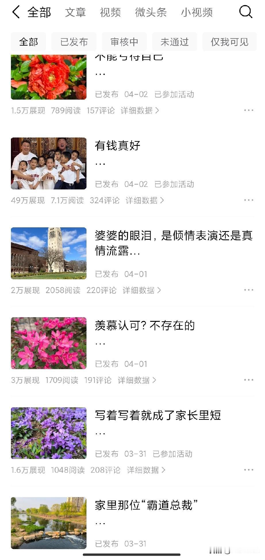 这段时间,我感觉在条哥这里写家长里短不好使了,叙述自己的一些遭遇或家庭琐事,推荐量特别低。