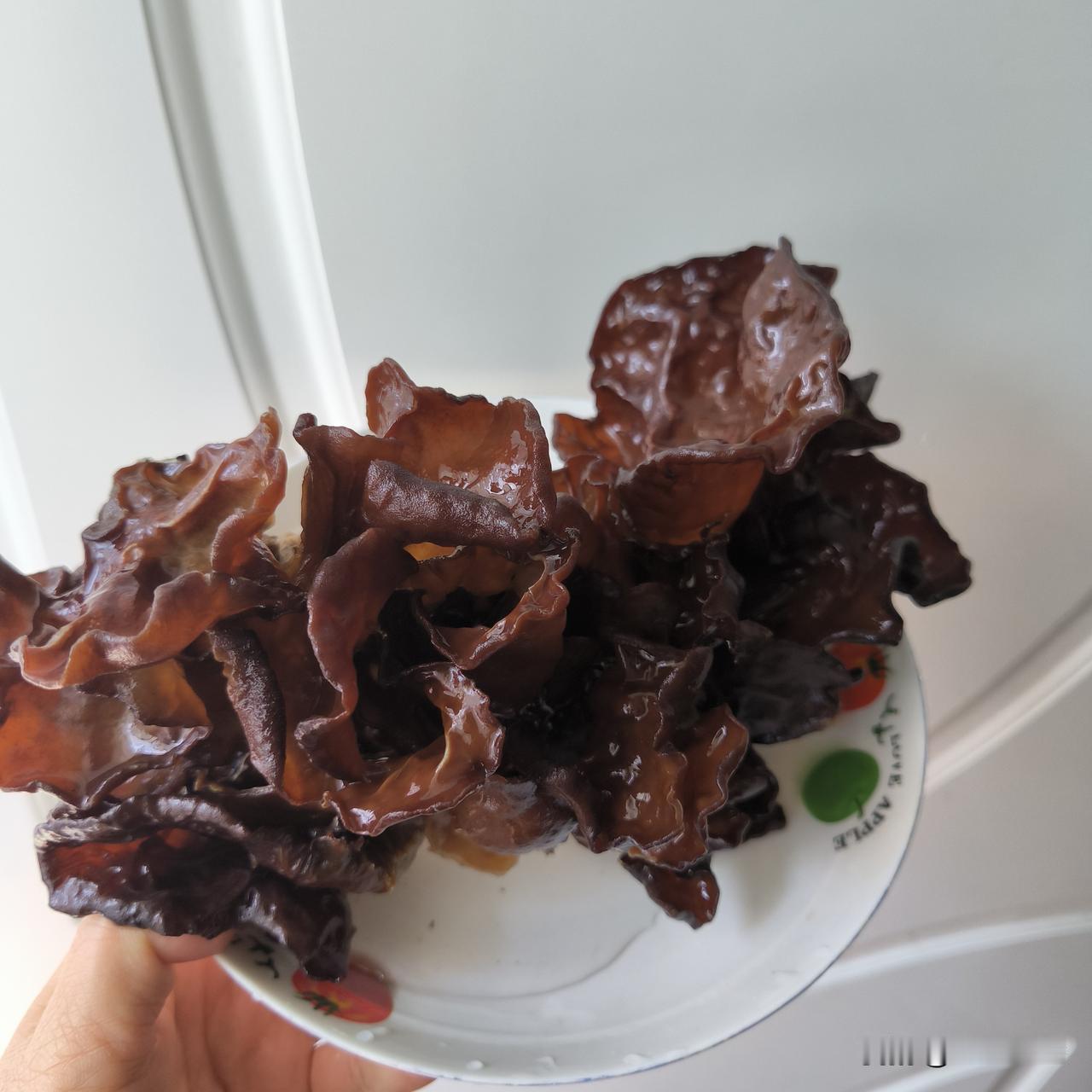 前天出去的时候,我还发现了一个树桩上长的木耳,这一大块木耳泡发之后能炒一盘,我用新蒜苔和肉丝炒了这个木耳,很脆嫩爽口。