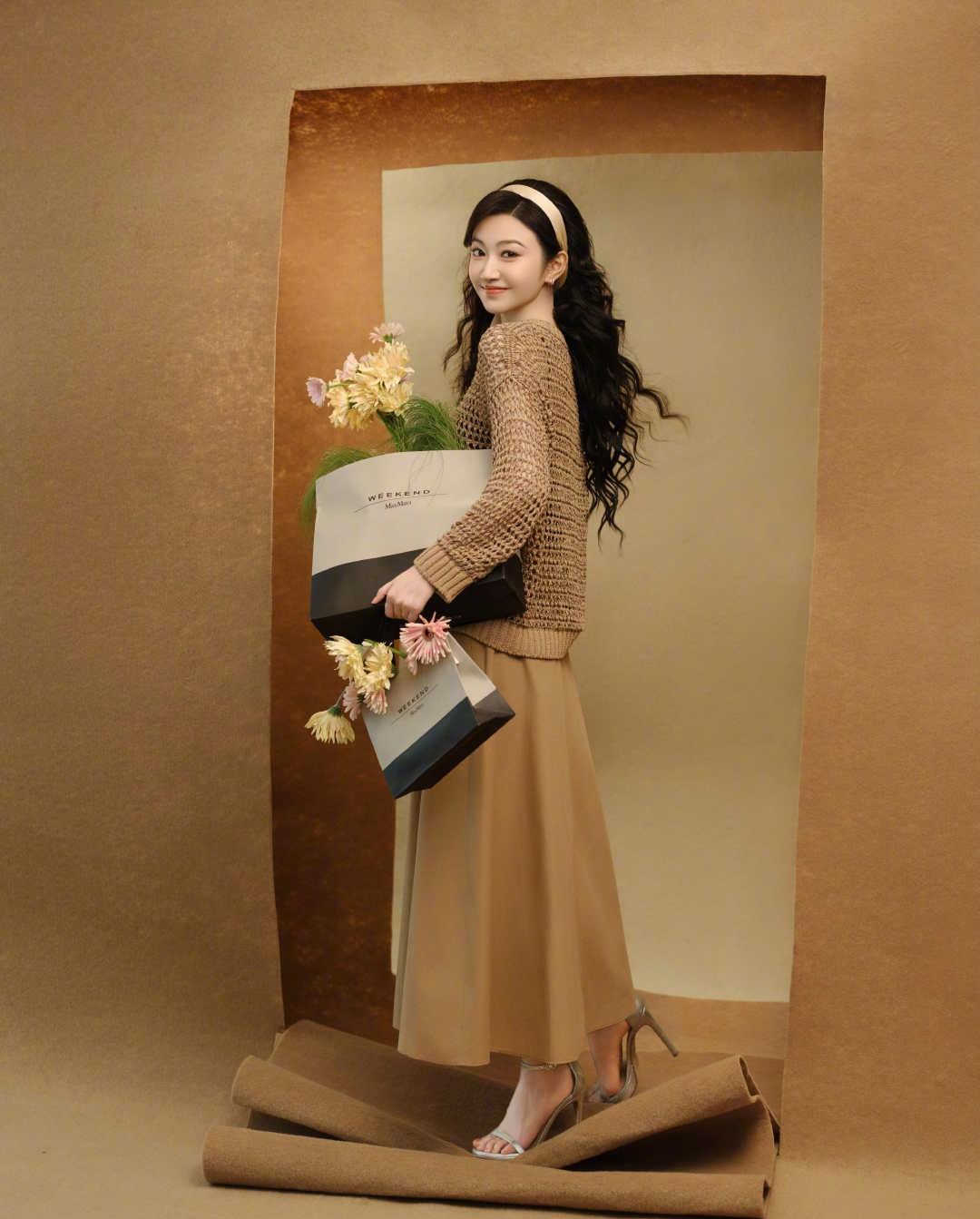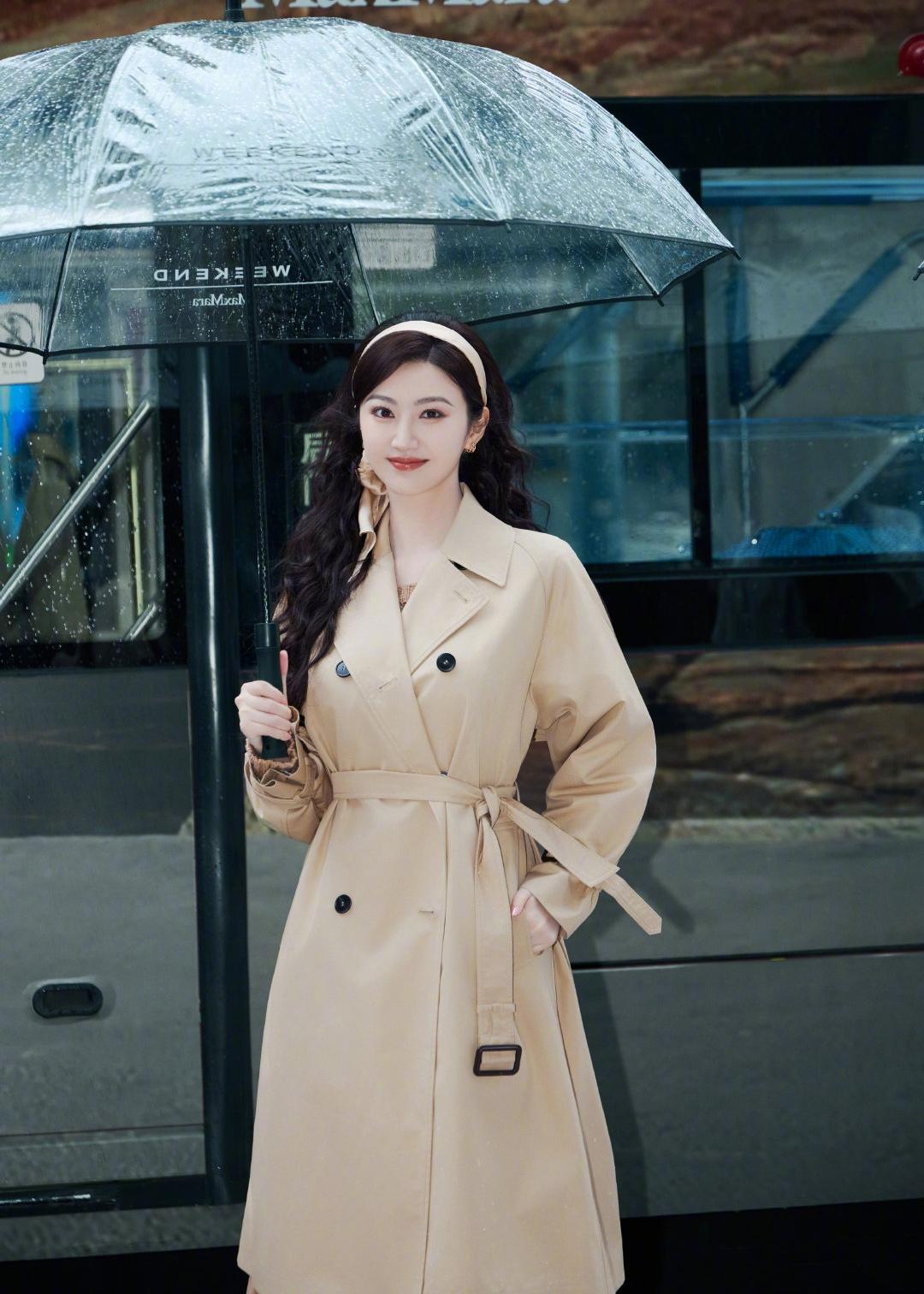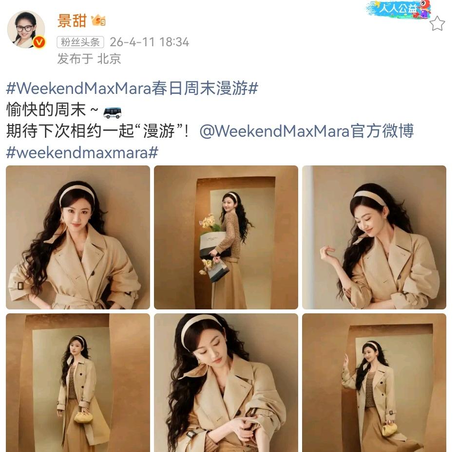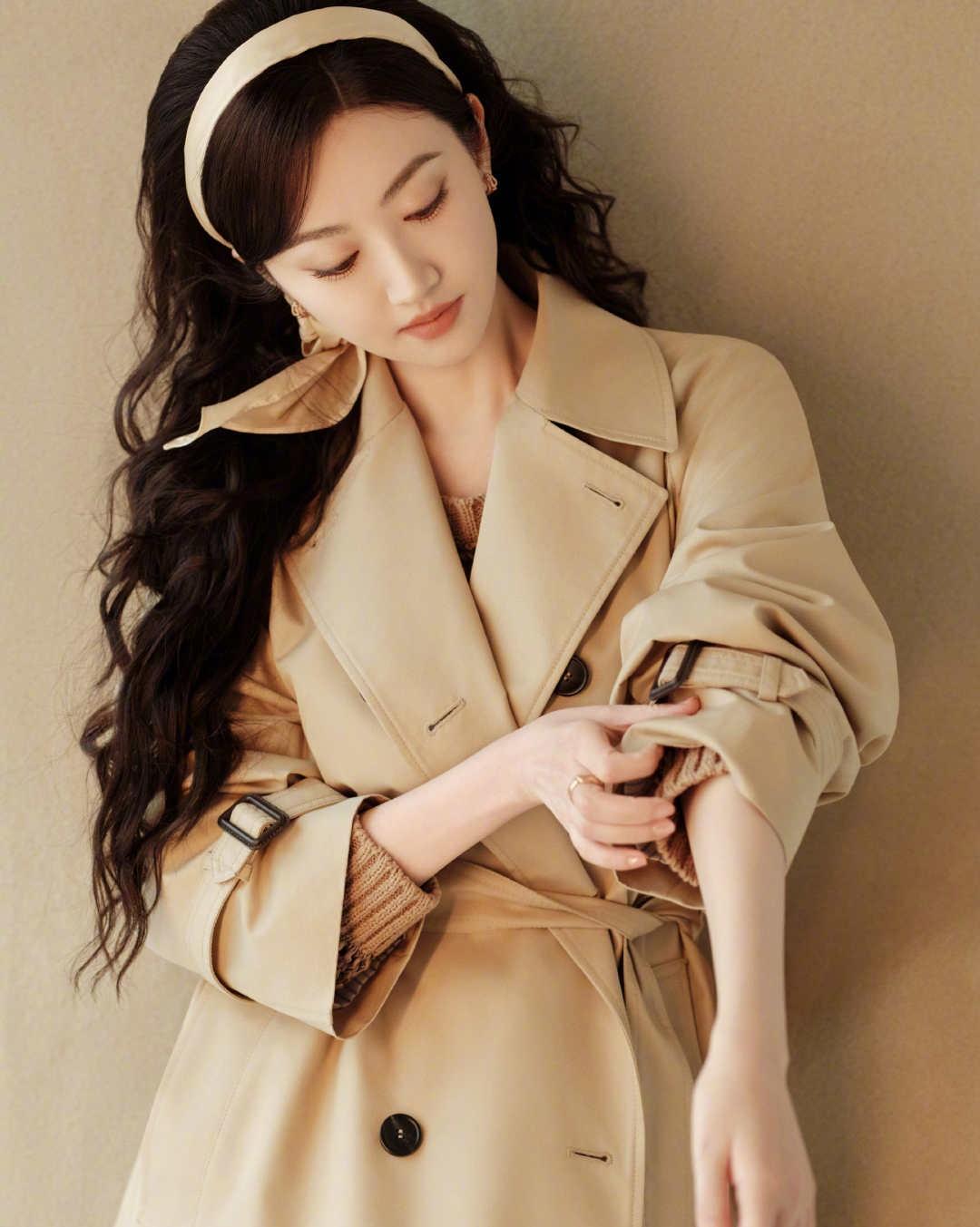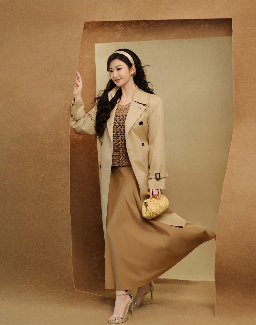 针织衫+半身裙+风衣 被景甜穿出了春天该有的模样 优雅温柔且飒爽 不失时尚感 魅