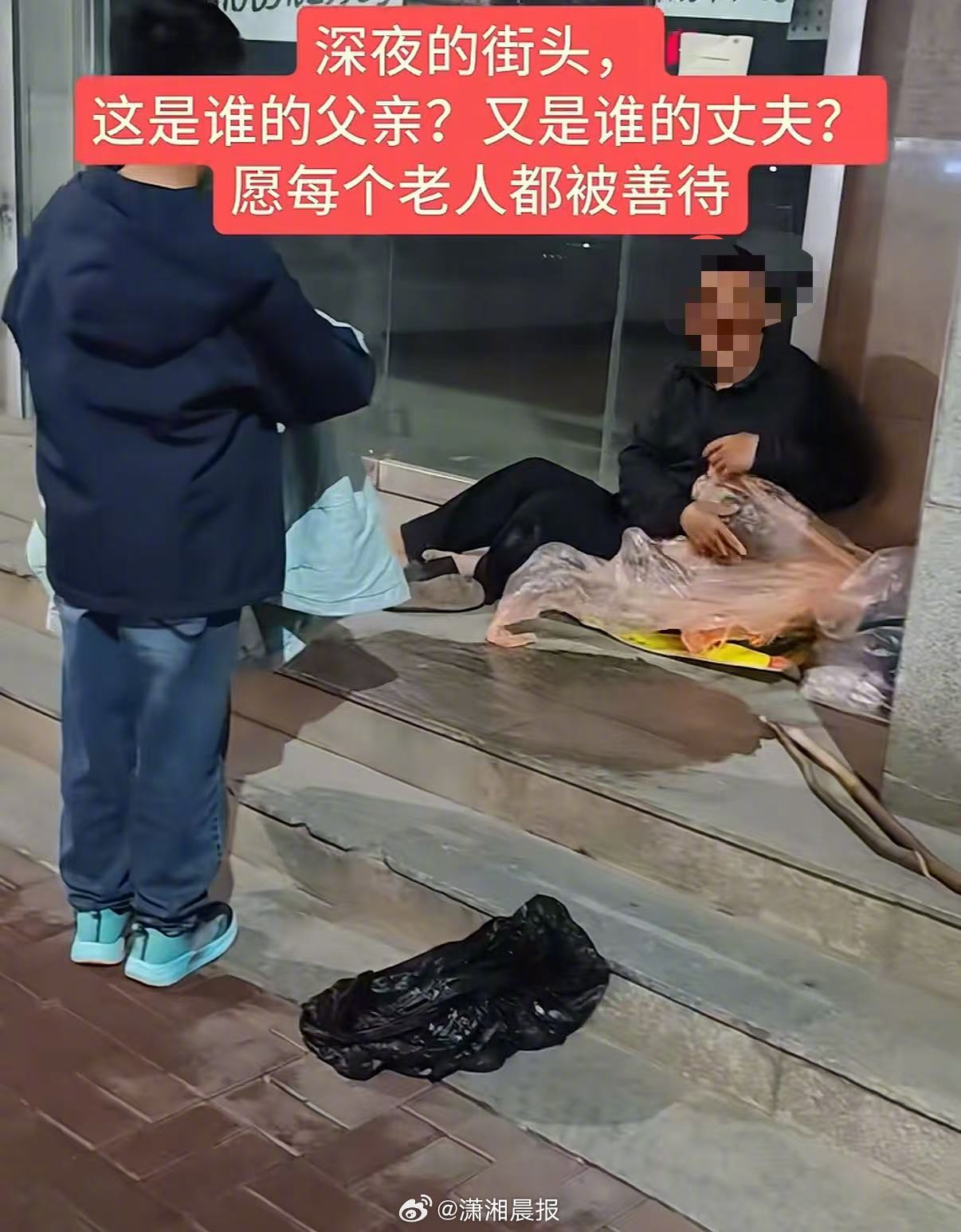 4月11日晚,她和邻居在一起聚餐,吃完饭大概10点半,准备关店时,发现隔壁躺着一个人,裹着塑料袋。“那一刻我就觉得很揪心,就让我家孩子给那个人送去被子,一看是个老人,他说他要准备回家,问他其他的情况他没说,我也没好再问了。”