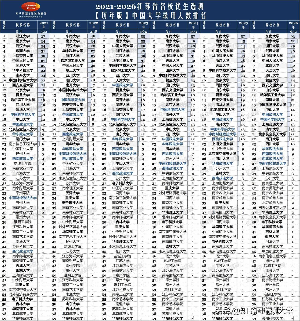 2026江苏名校优选录取人数:东南第1,武大华科前5!