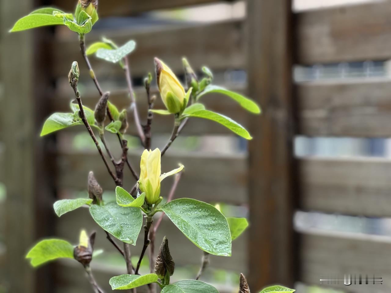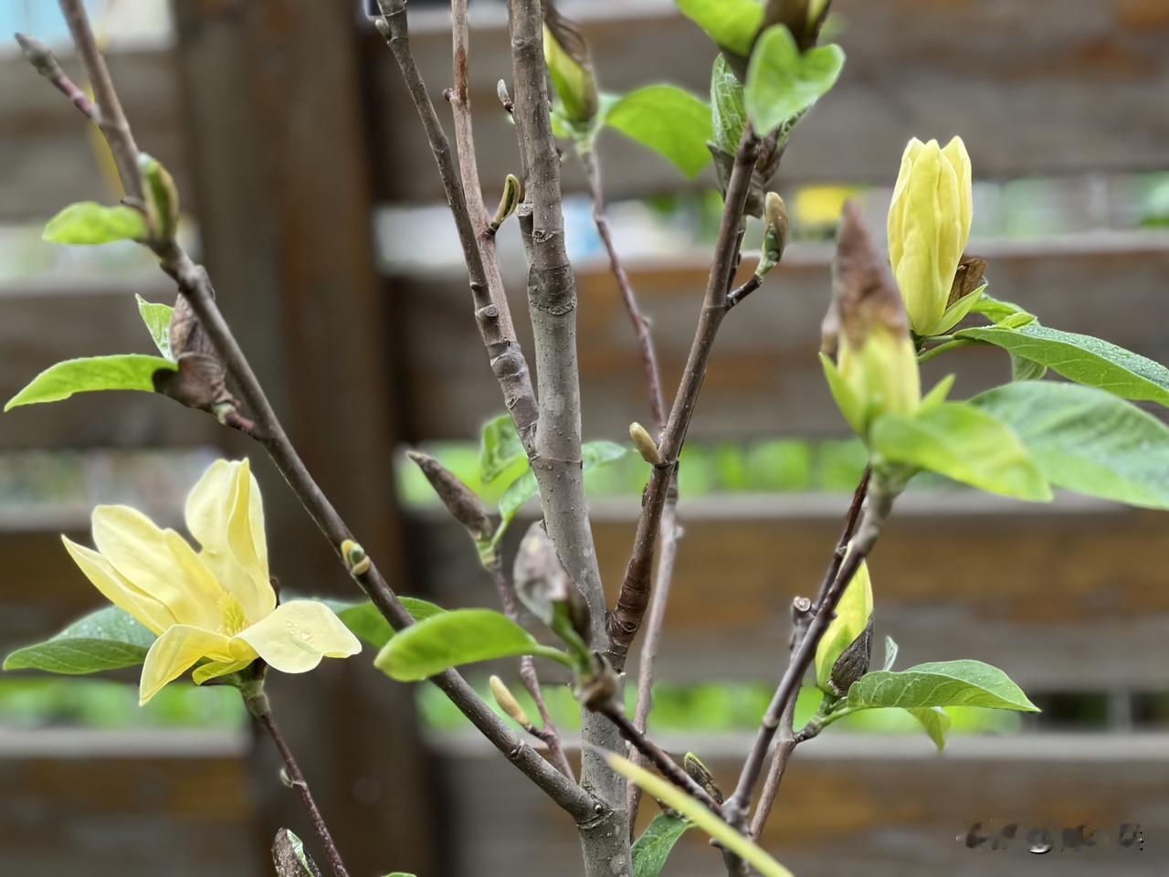 这种木本植物开的花形似百合,开花前有个“脱帽子”的习性。那层褐色的鳞苞若未完全褪去,花朵便始终含蓄内敛,绝不张扬绽放。我一时竟想不起它的名字。