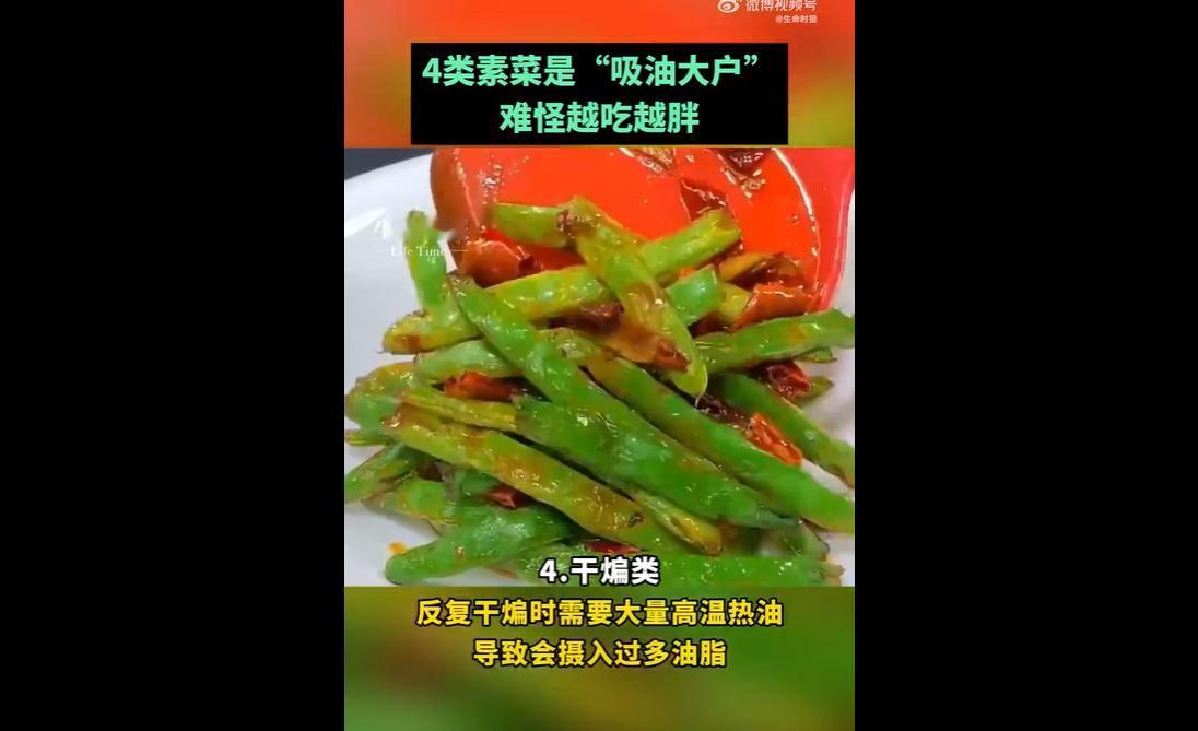 营养专家提醒,干锅、蔬菜沙拉、红烧、干煸四类素菜是吸油大户,茄子、土豆等多孔、高淀粉蔬菜及叶菜类,因自身结构易吸附大量油脂,部分做法会让素菜热量暴涨。