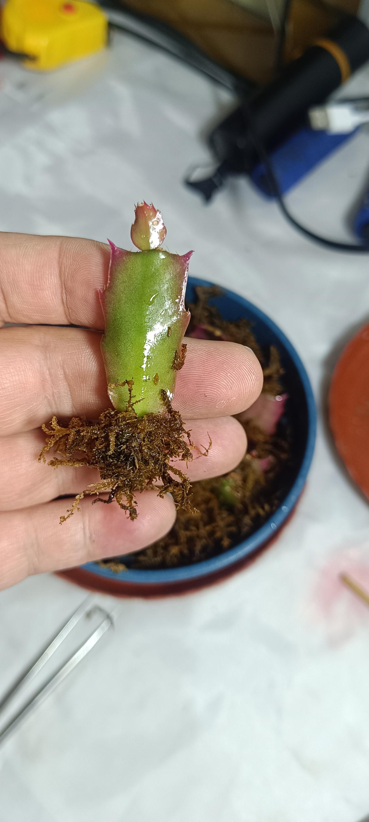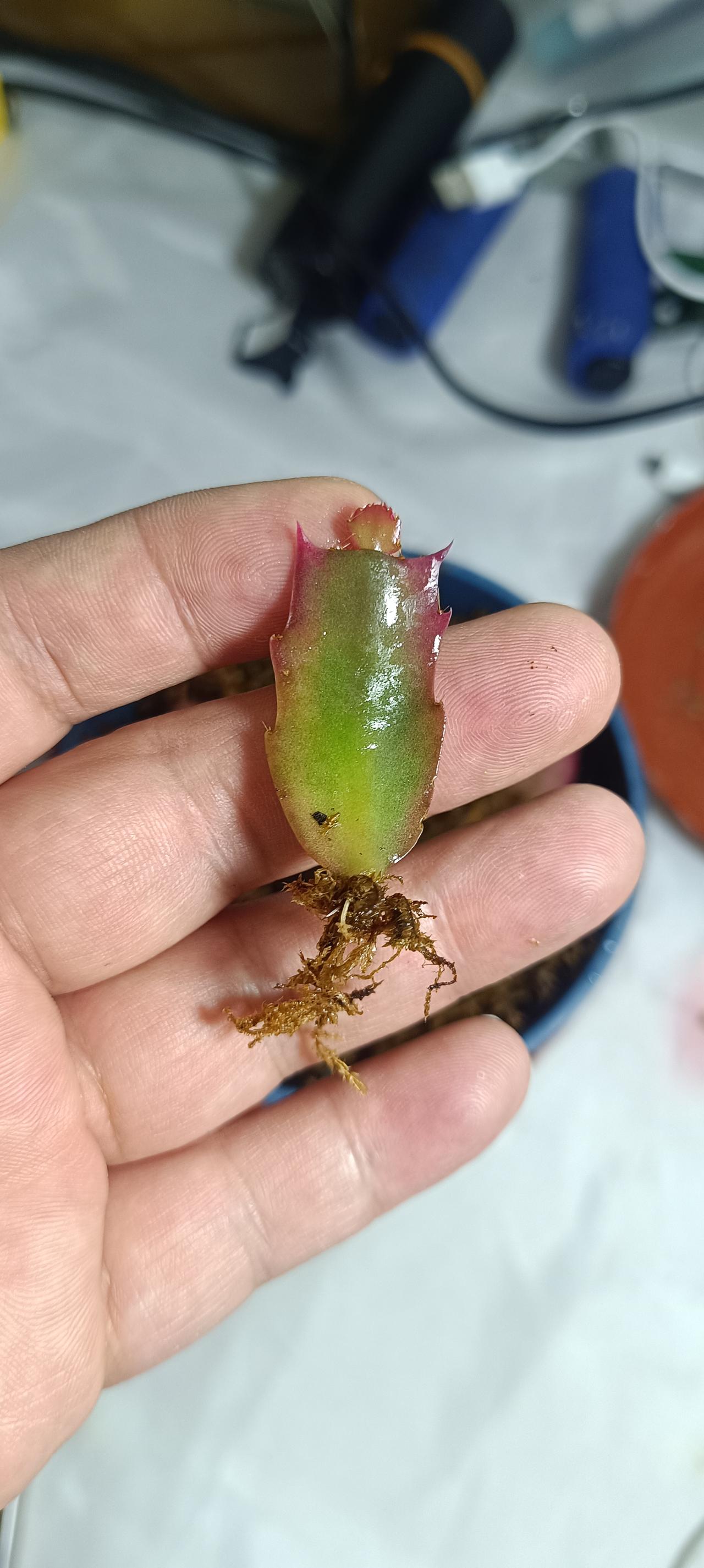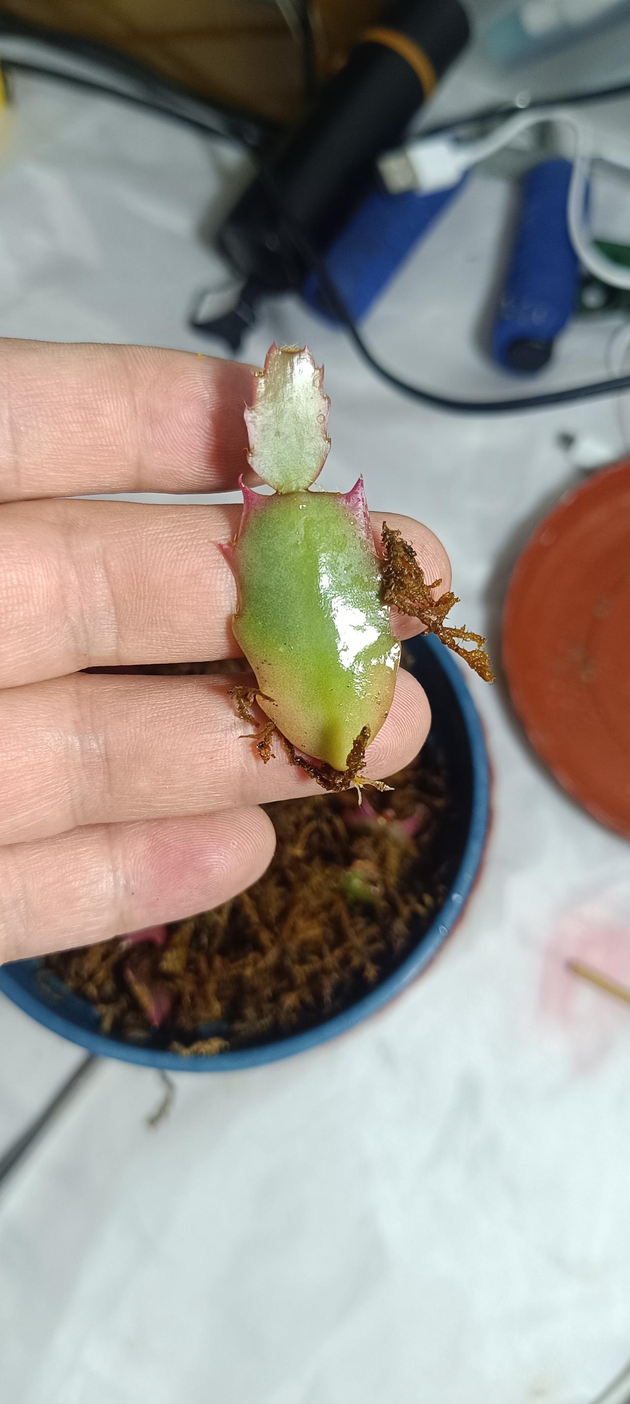 这是红重瓣蟹爪兰要扔掉的叶片,我扦插活了