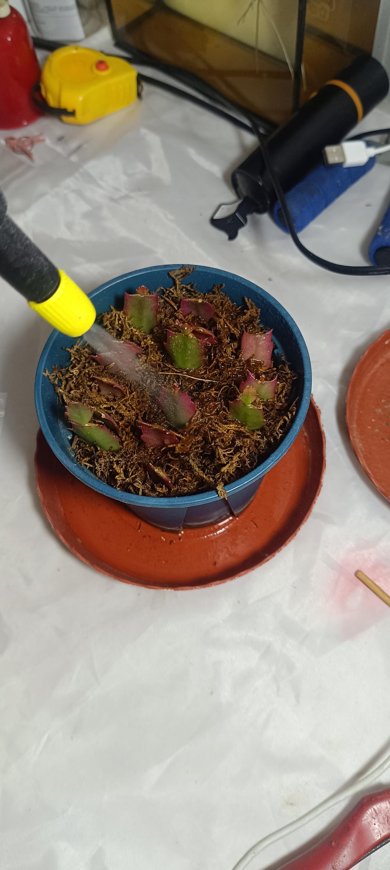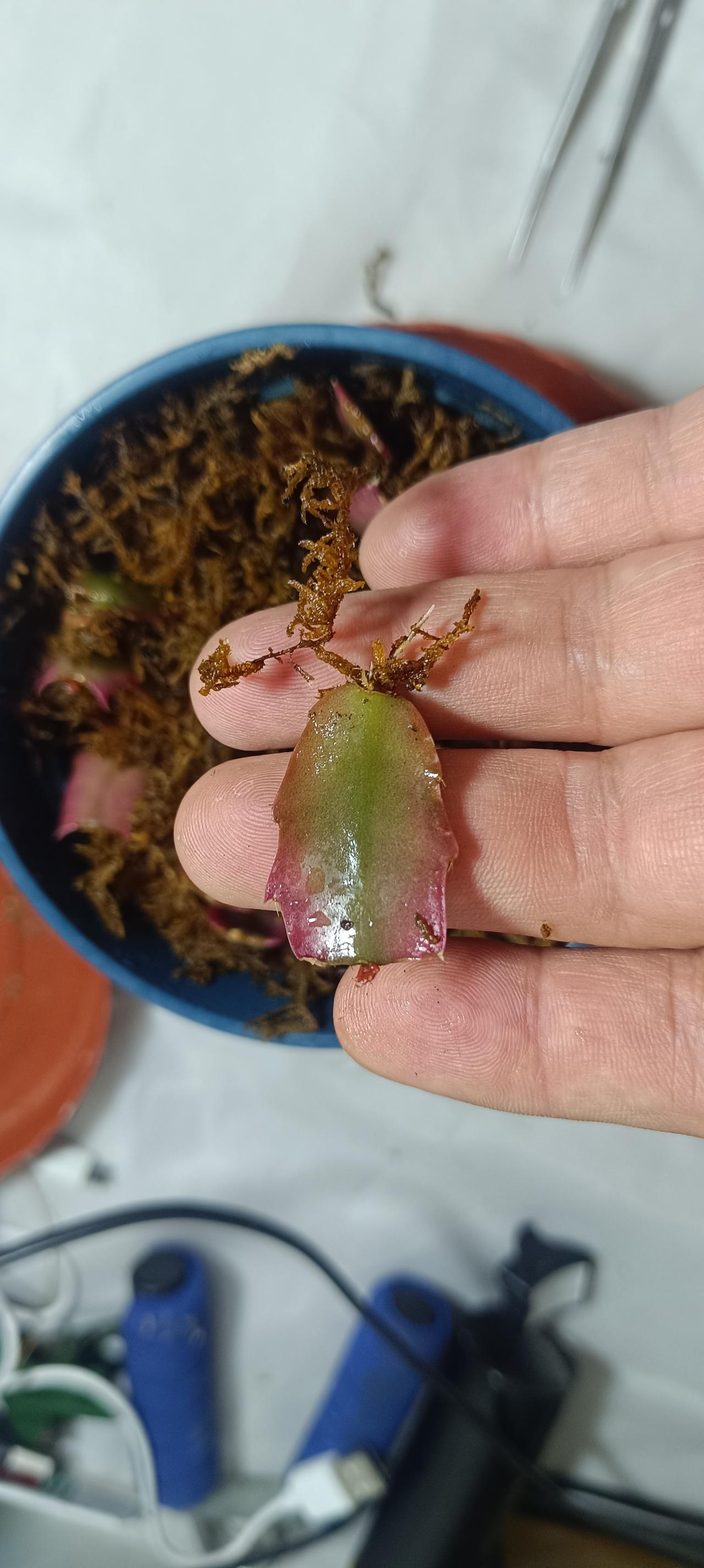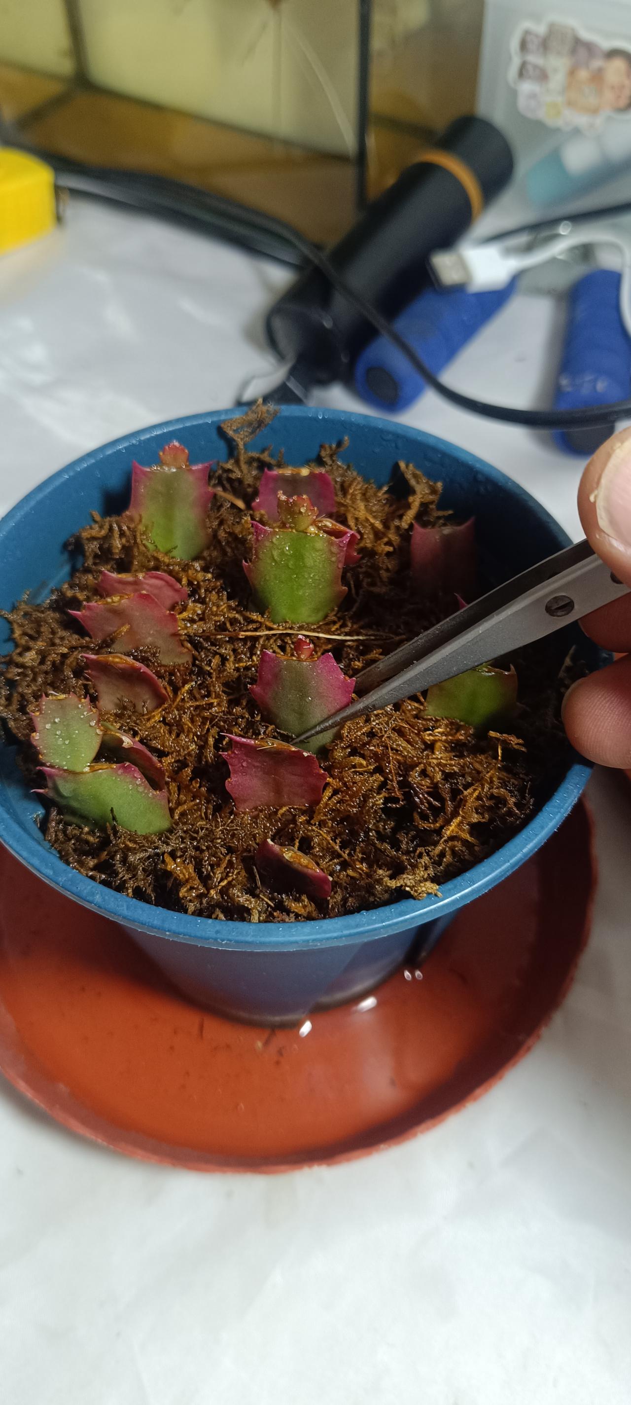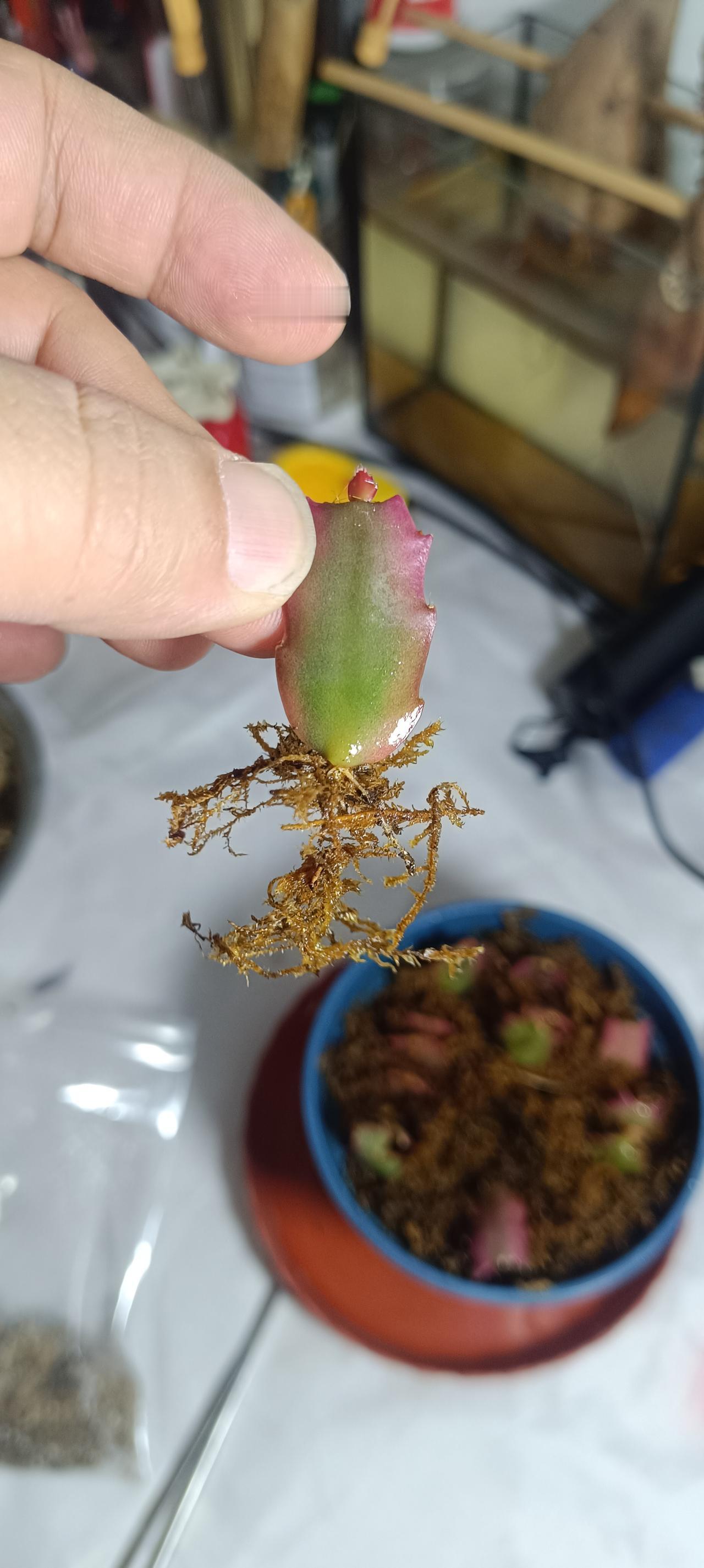 这是红重瓣蟹爪兰要扔掉的叶片,我扦插活了