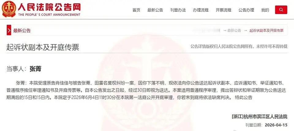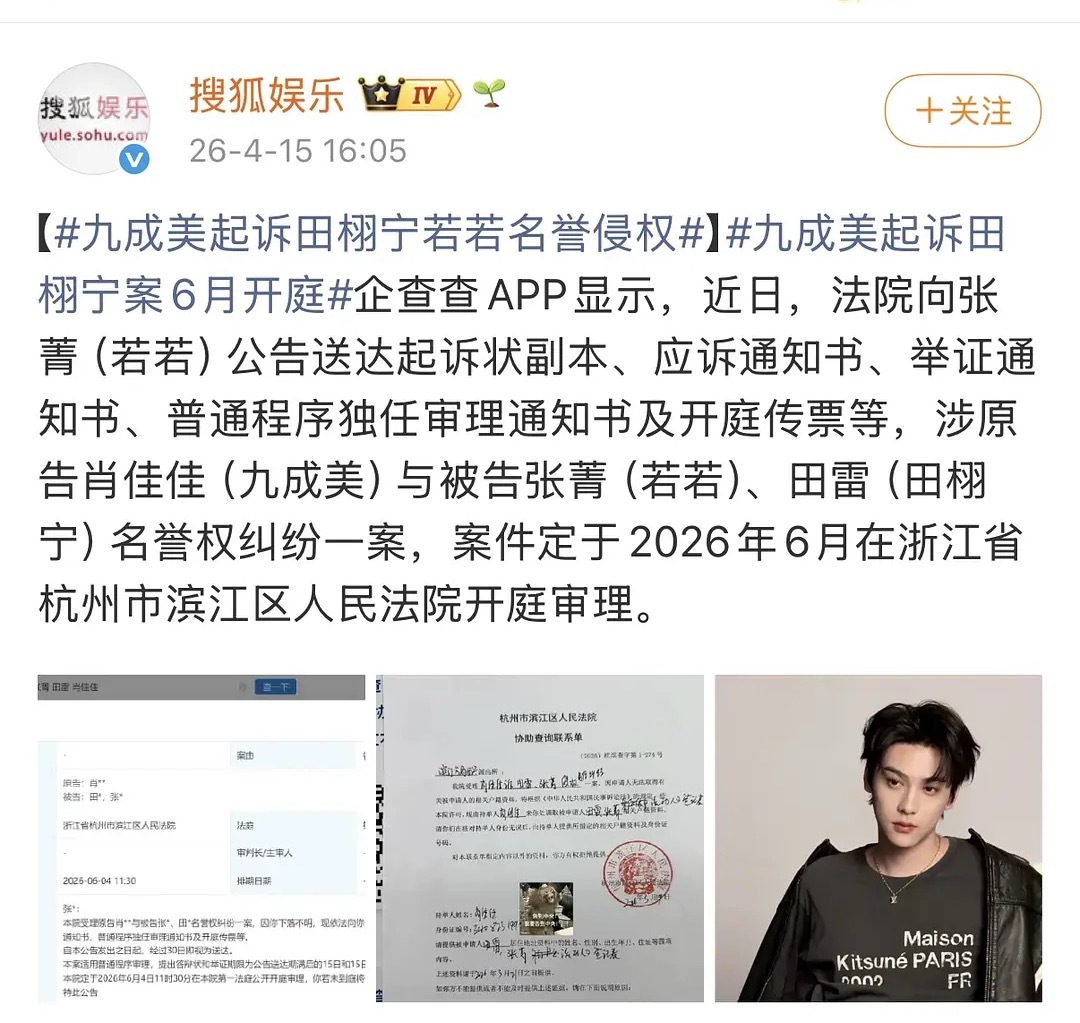 九成美起诉田栩宁和若若的案件6月就要开庭了,好快! 九成美起诉田栩宁若若名誉侵权
