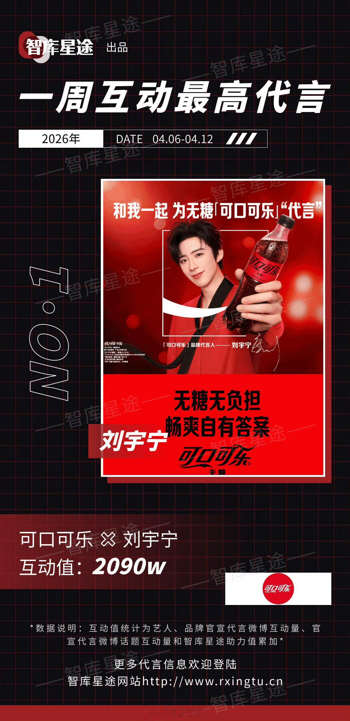 刘宇宁一周内官宣两大顶级国民商务品代:可口可乐➕上好佳!🔥时隔12年国内首位可