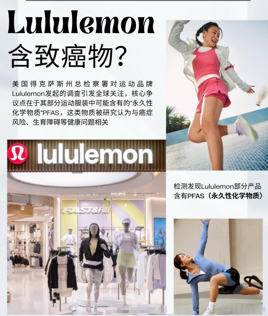 我觉得吧,这种事情先不必惊慌焦虑,PFAS的负面消息已经很多年了,致癌性分类最高是2A类,就是“对人类很可能致癌”,其他成分基本都是2B类,即“对人类可能致癌”。如果你实在觉得不靠谱,那就别穿拥有防水能力的冲锋衣了,或者不要贴身穿,至少要隔一件打底内衣。对了,快餐的防油纸,也是存在这类物质的,这个才是真正需要注意的,因为是跟食物直接接触。这方面大家最好多加注意,尽量避免吃那些需要防油纸包装的东西,比如外带的汉堡、各种鸡肉卷等等。防水冲锋衣多含有PFASlululemon曾因用户投诉下架产品Lululemon被调查Lululemon回应疑含致癌化学物