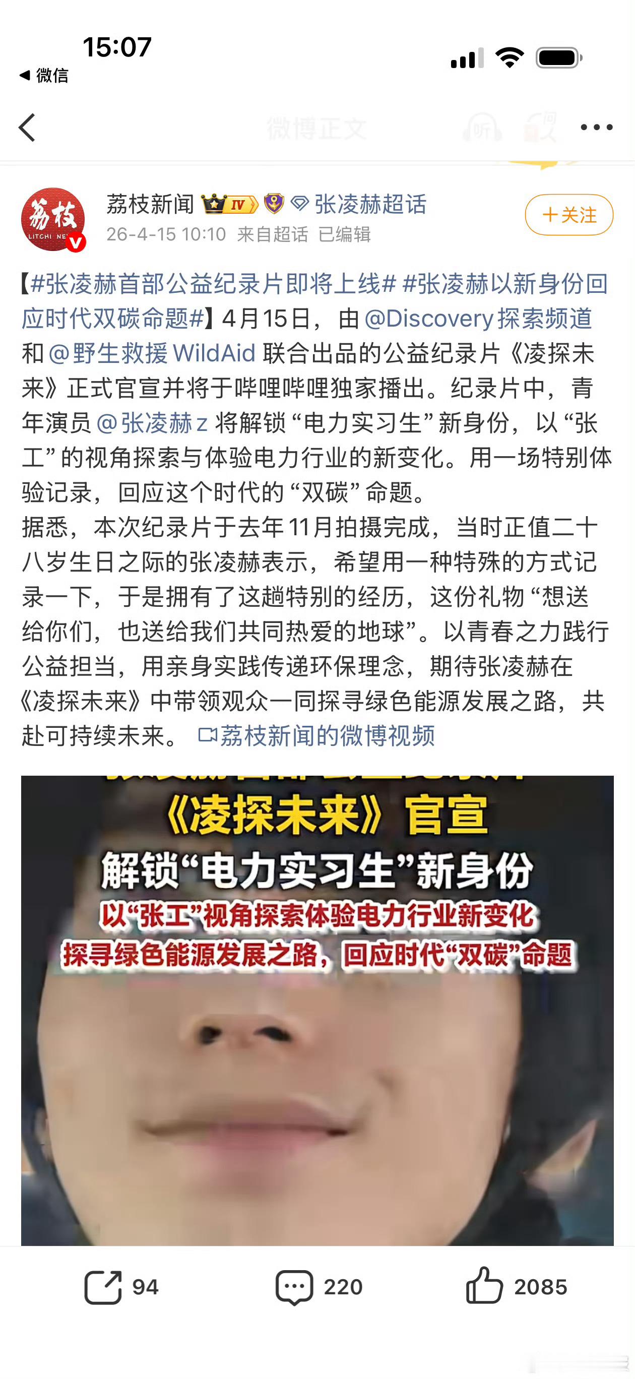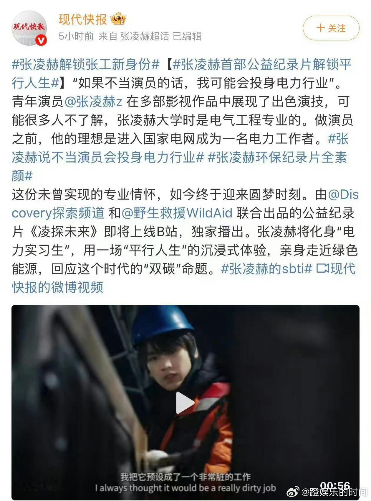 张凌赫在江苏的排面张凌赫纪录片官宣摇来了半个江苏媒体江苏全力护航,媒体矩阵齐发力,张凌赫纪录片排面拉满。《凌探未来》里他以电力实习生视角,走进风电、光伏等项目现场,回归工科本色,带你看见不一样的能源中国。