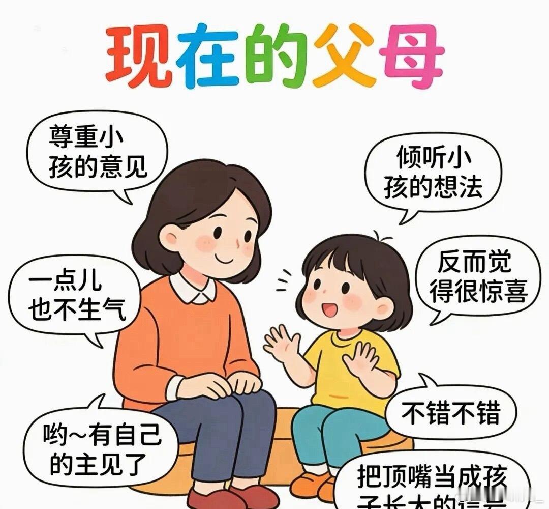 我们的爸妈vs我们当爸妈小时候爸妈管我们简单直接,不听话就批评,主打一个省心。现在我们当爸妈,说话小心翼翼,生怕伤孩子自尊,遇事先沟通,学着跟孩子做朋友。