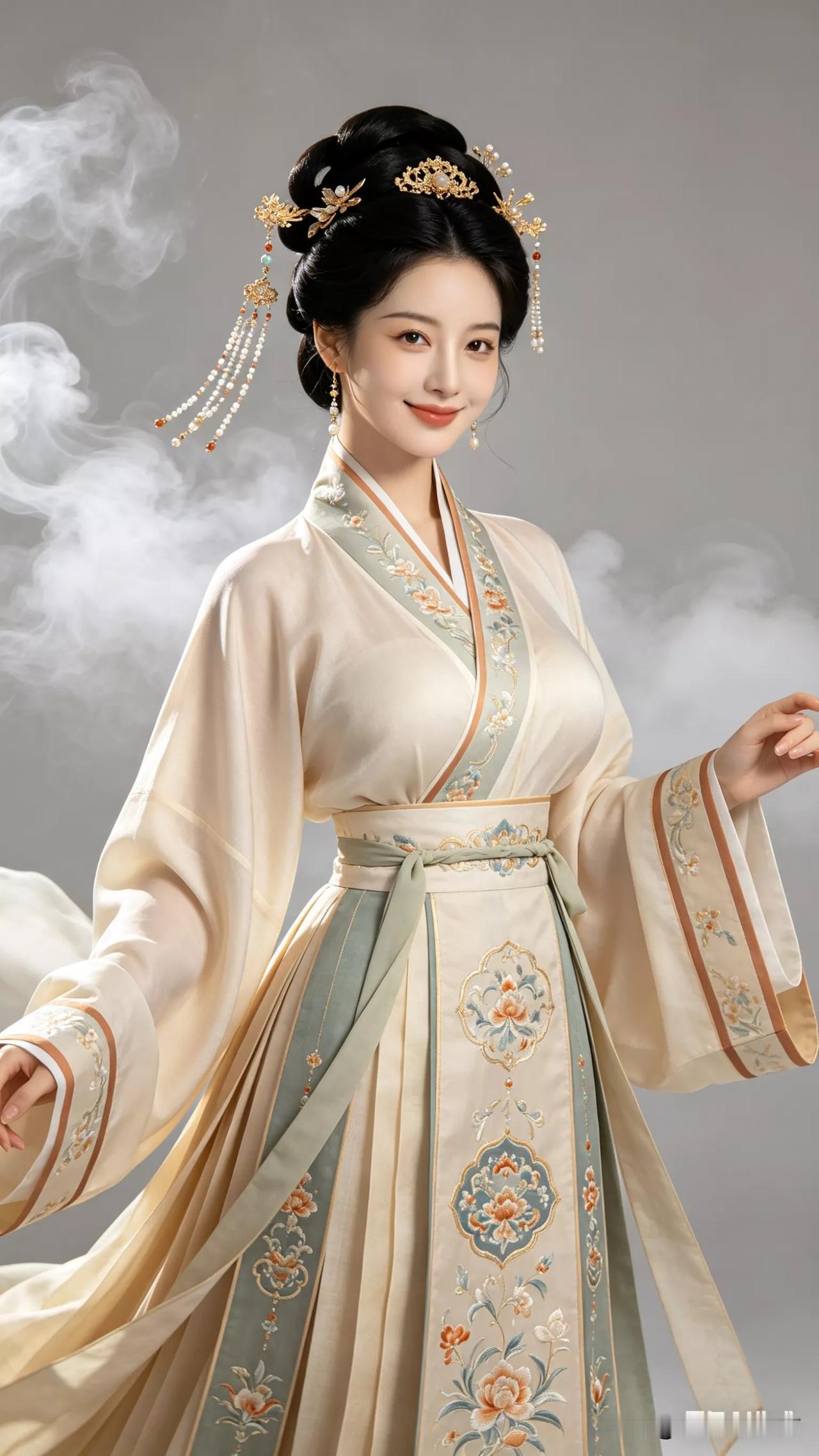 穿越时空的明朝汉服古典美人,惊艳了时光张立启原创书画AI作品古仕女发髻服饰集锦6