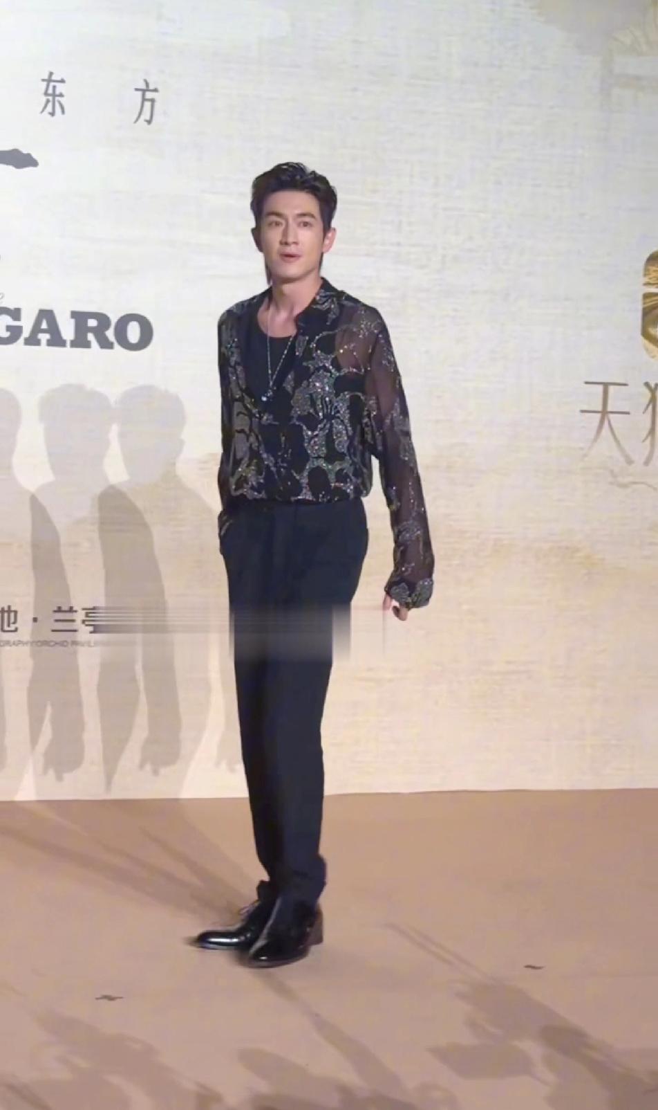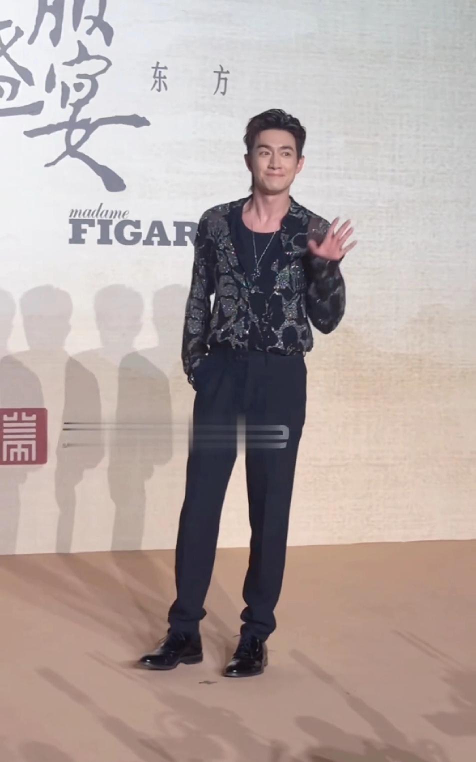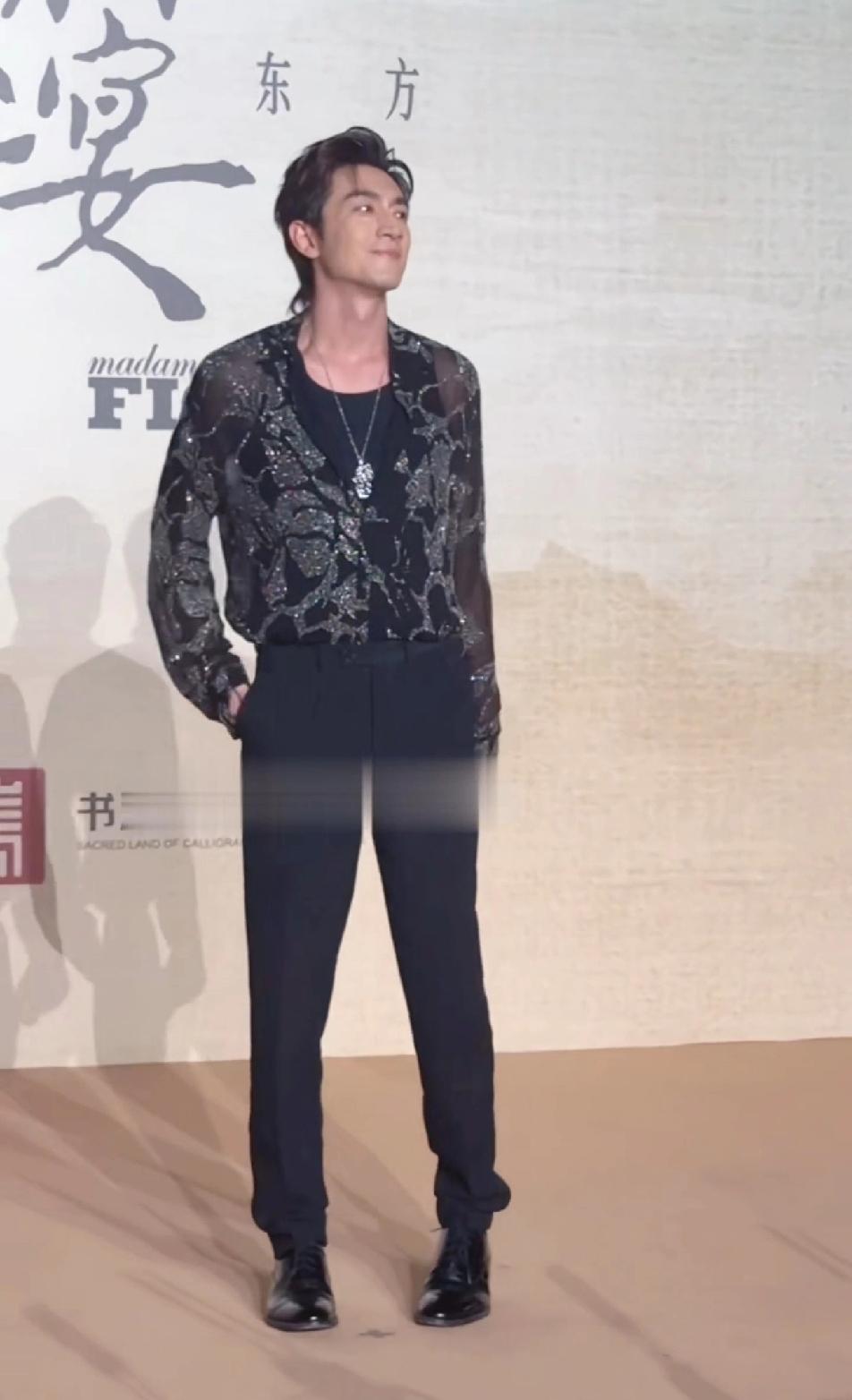 这件Blingbling的透视衬衣真的把林更新这个东北爷们整不会了,没见过林更新穿这种风格,跟公园里跳国标的大爷们穿的同款,主办方这是给了林更新多少出场费才能让他接受穿这件衣服出场的?严重怀疑这件衣服是不要穿内搭背心的,应该是林更新极力反对才加上内搭的吧?怎么说呢?林更新的气质居然可以让一件油腻到极点的衣服也变得可以接受了……但是,哥,还是好好穿你的黑衬衣吧!