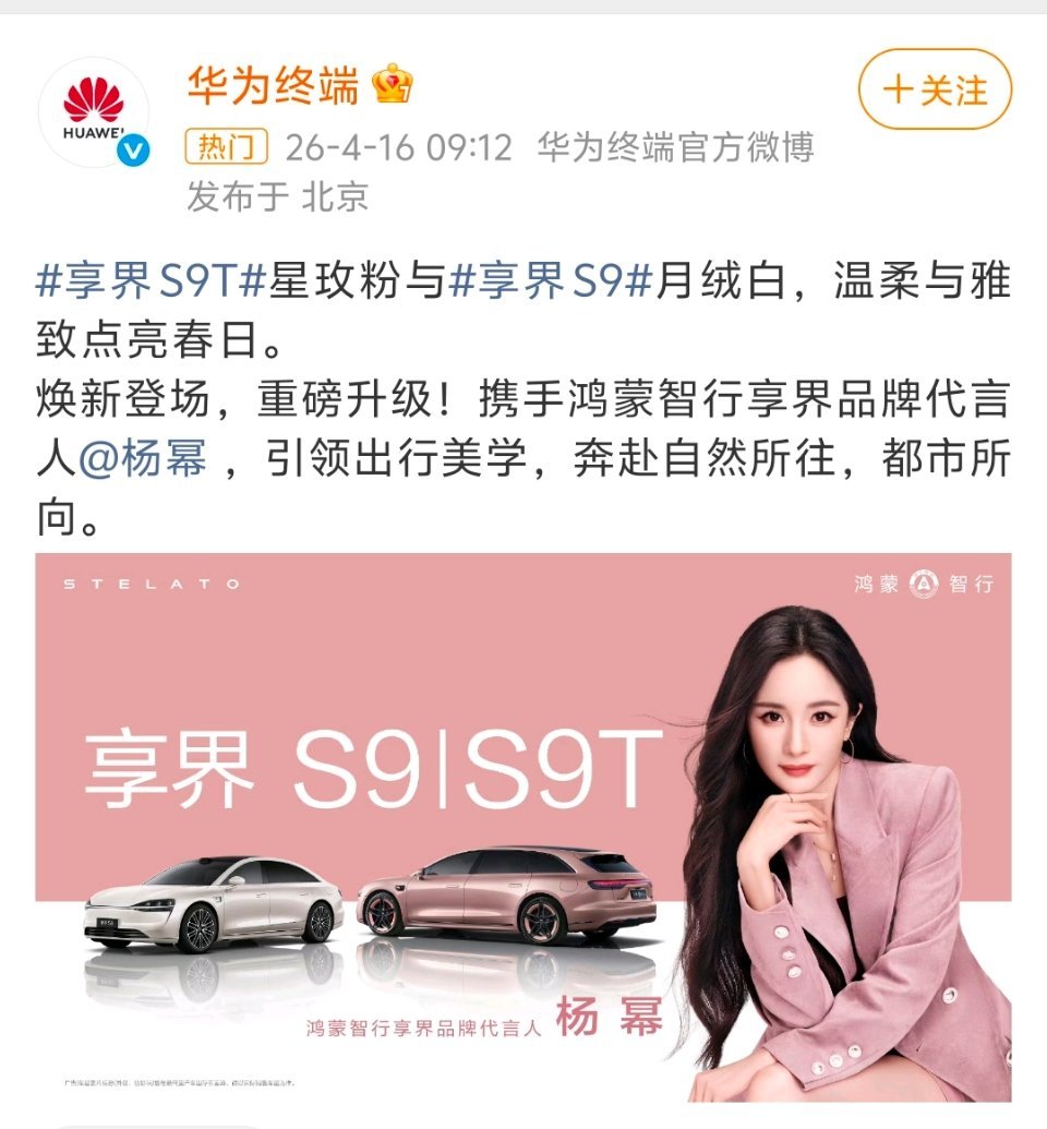 你说的没错。杨幂已经升为享界品牌代言了。按照高档到低档,尊界(江淮)>问界(赛力