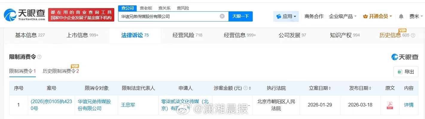 #华谊兄弟及创始人已被限消#【#华谊兄弟旗下超十家公司已注销#】据媒体报道,近日,华谊兄弟发布公告称,公司被债权人申请重整及预重整,相关话题引发热议。