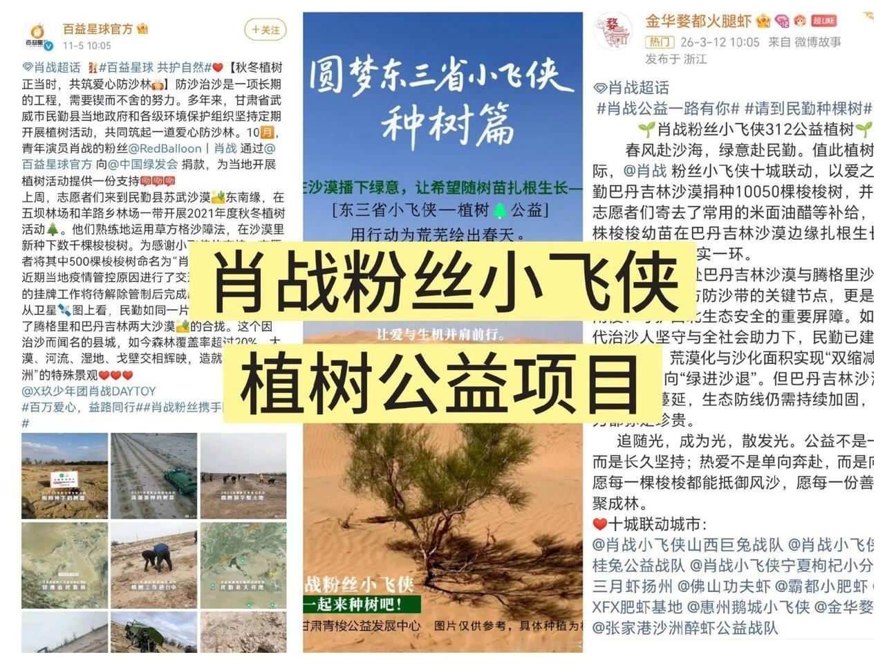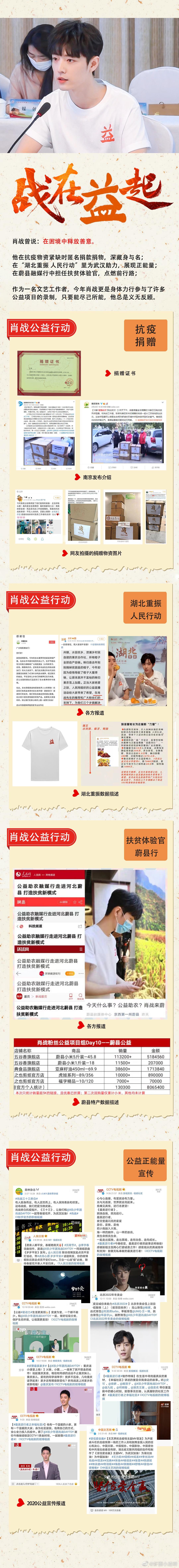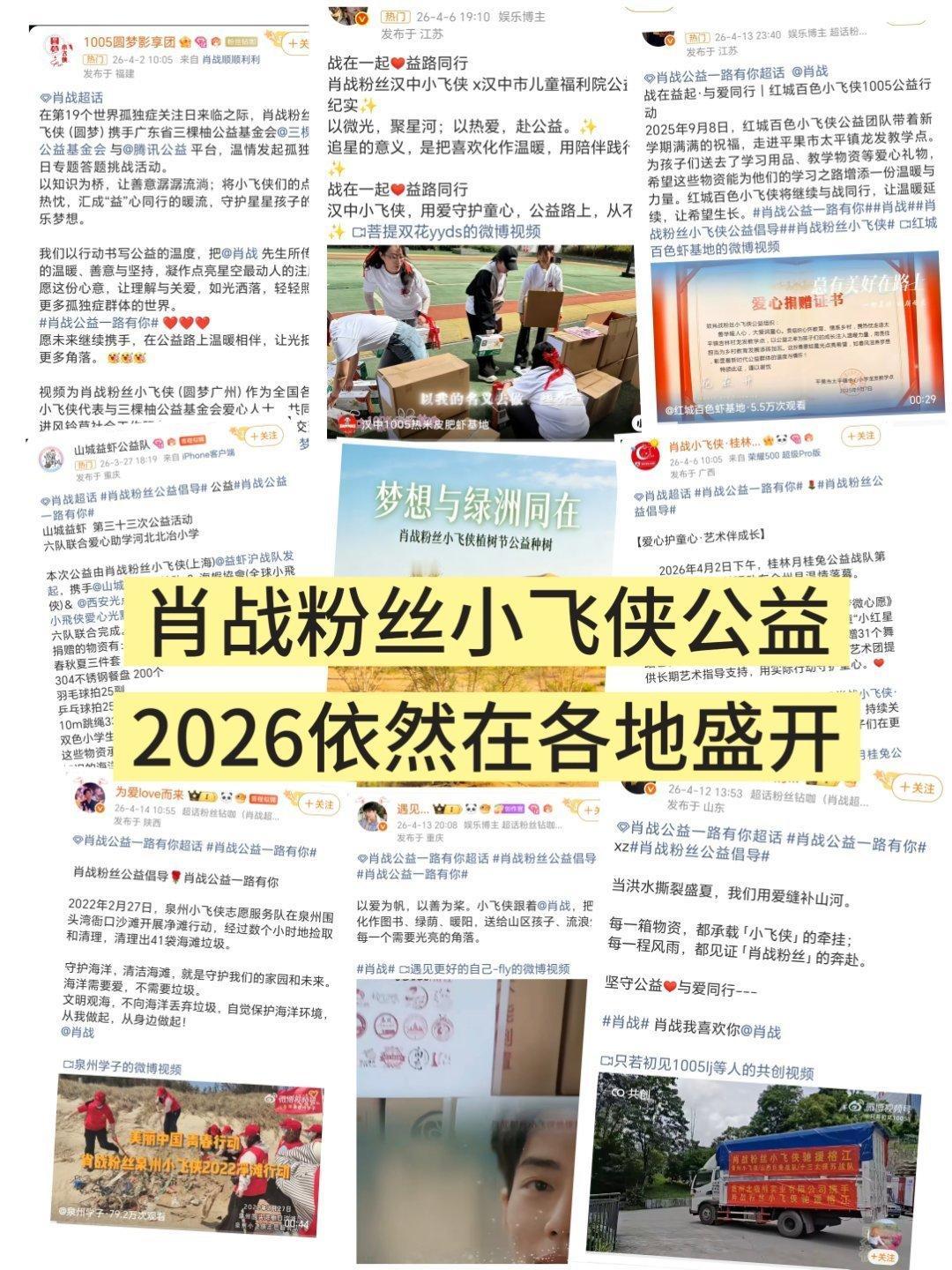 此外,多年来,小飞侠们在扶贫助农、抗灾救洪、教育志愿、乡村振兴、关爱老人儿童、关爱特殊群体、环保植树、生日公益等方方面面都在践行八个字:但行好事,莫问前程。在偶像肖战的正能量带领和影响下,以实际行动献出爱心,把爱撒向各个角落❤️。