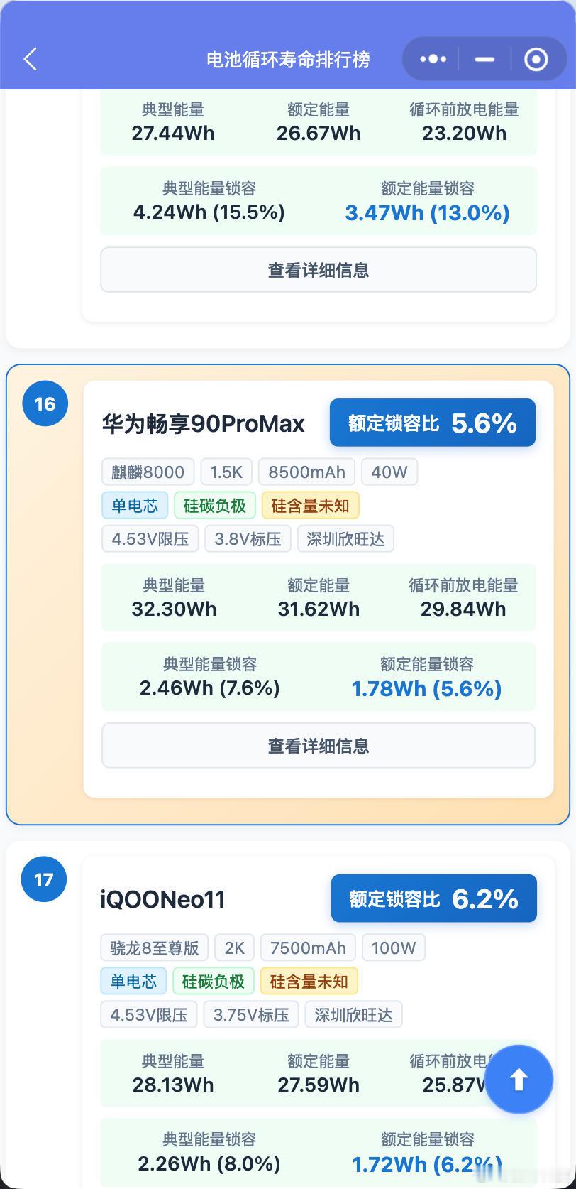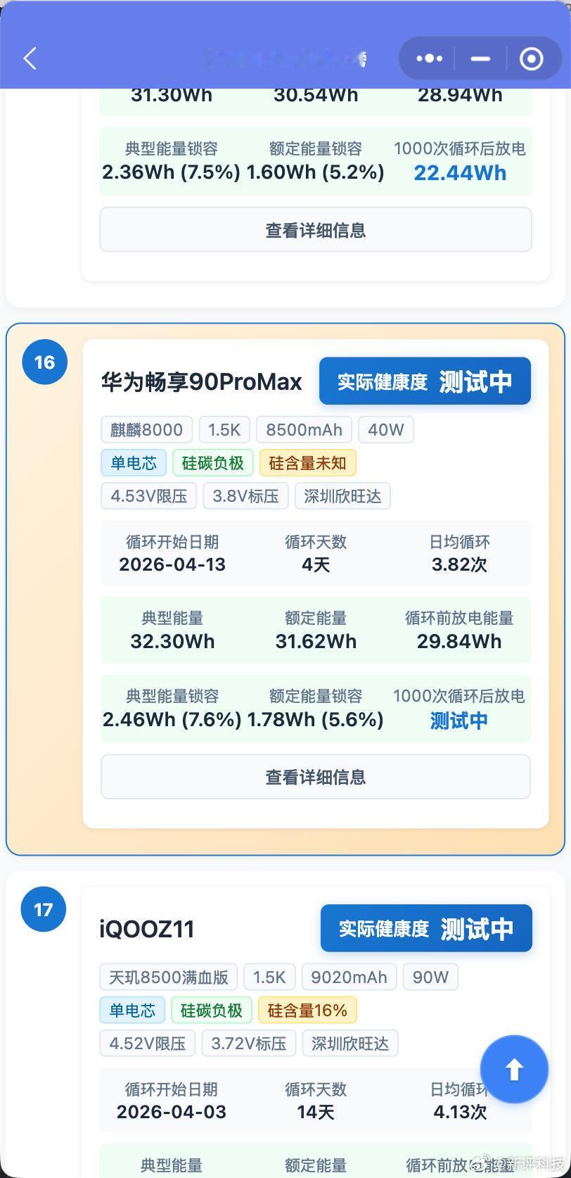 新评科技数据库 华为畅享90ProMax 电池测试报告: