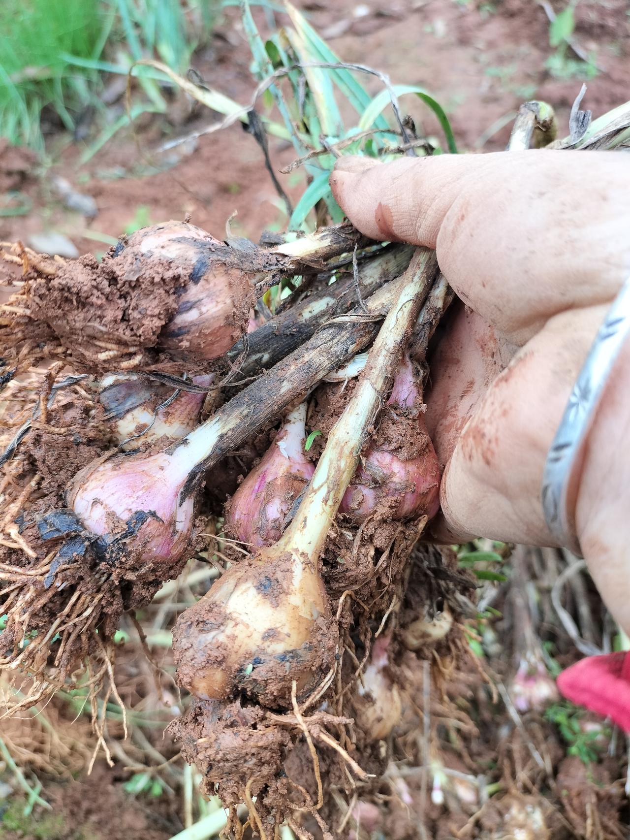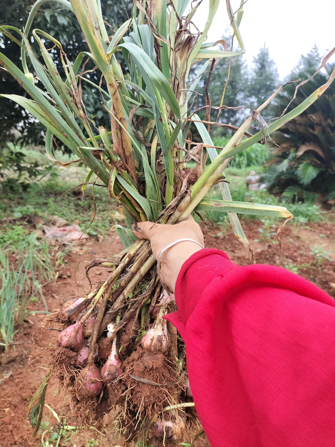 大家看看,这就是蒜苗种,是我种的蒜没有吃完,在地里老掉了,就变成了蒜种,今年可以