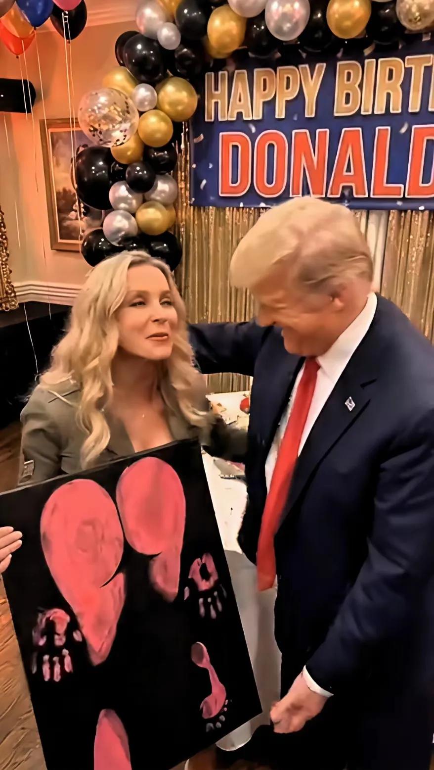 这女的给特朗普送的啥生日礼物?没看懂!!!