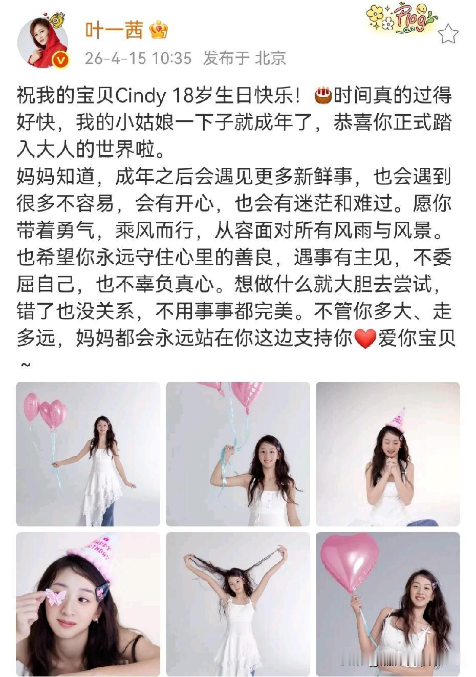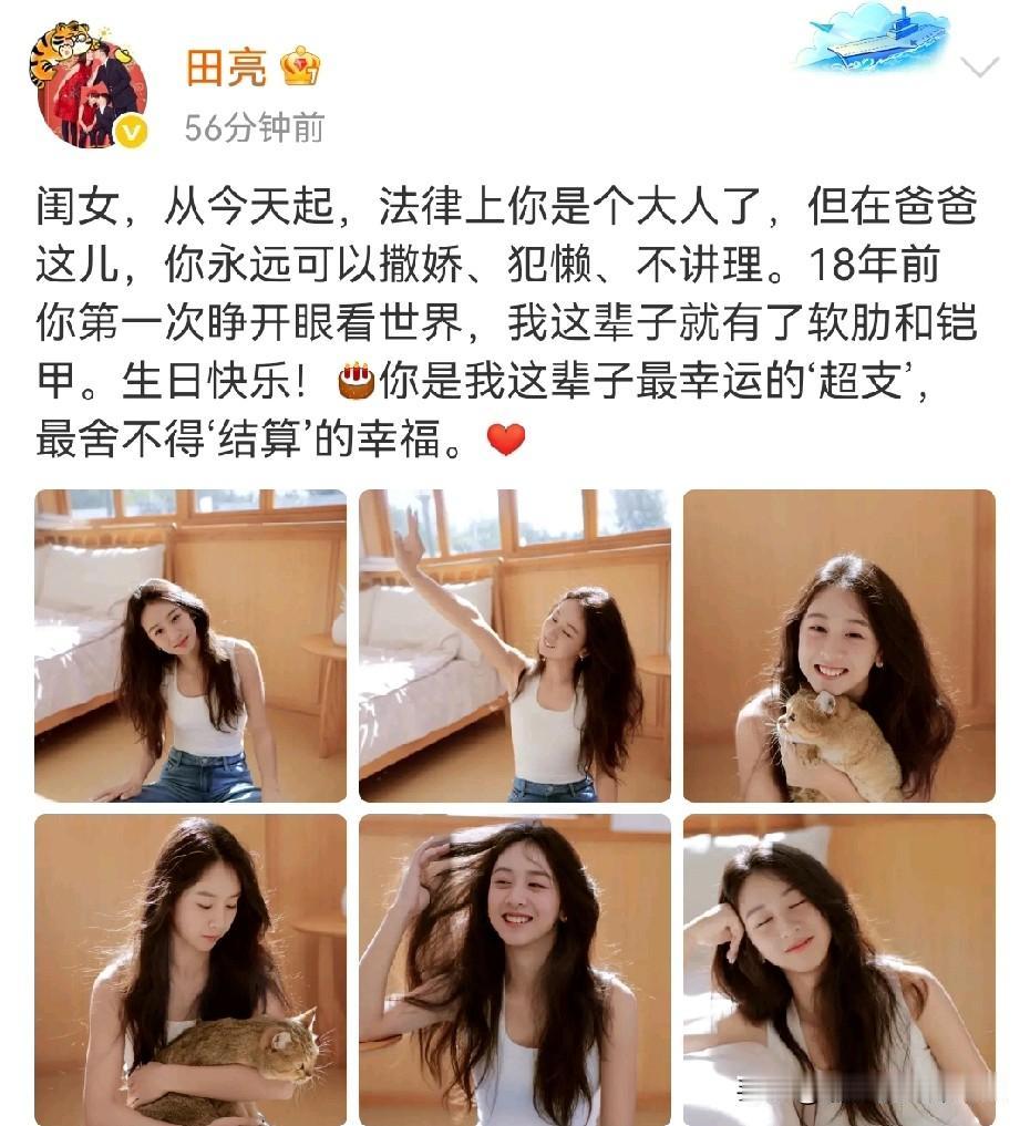 田亮叶一茜分享女儿18岁生日照!这才是18岁该有的样子嘛,阳光开朗,干干净净,比那些小小年纪画个大浓妆,奢侈大牌加身,整天搔首弄姿的星二代美太多了~