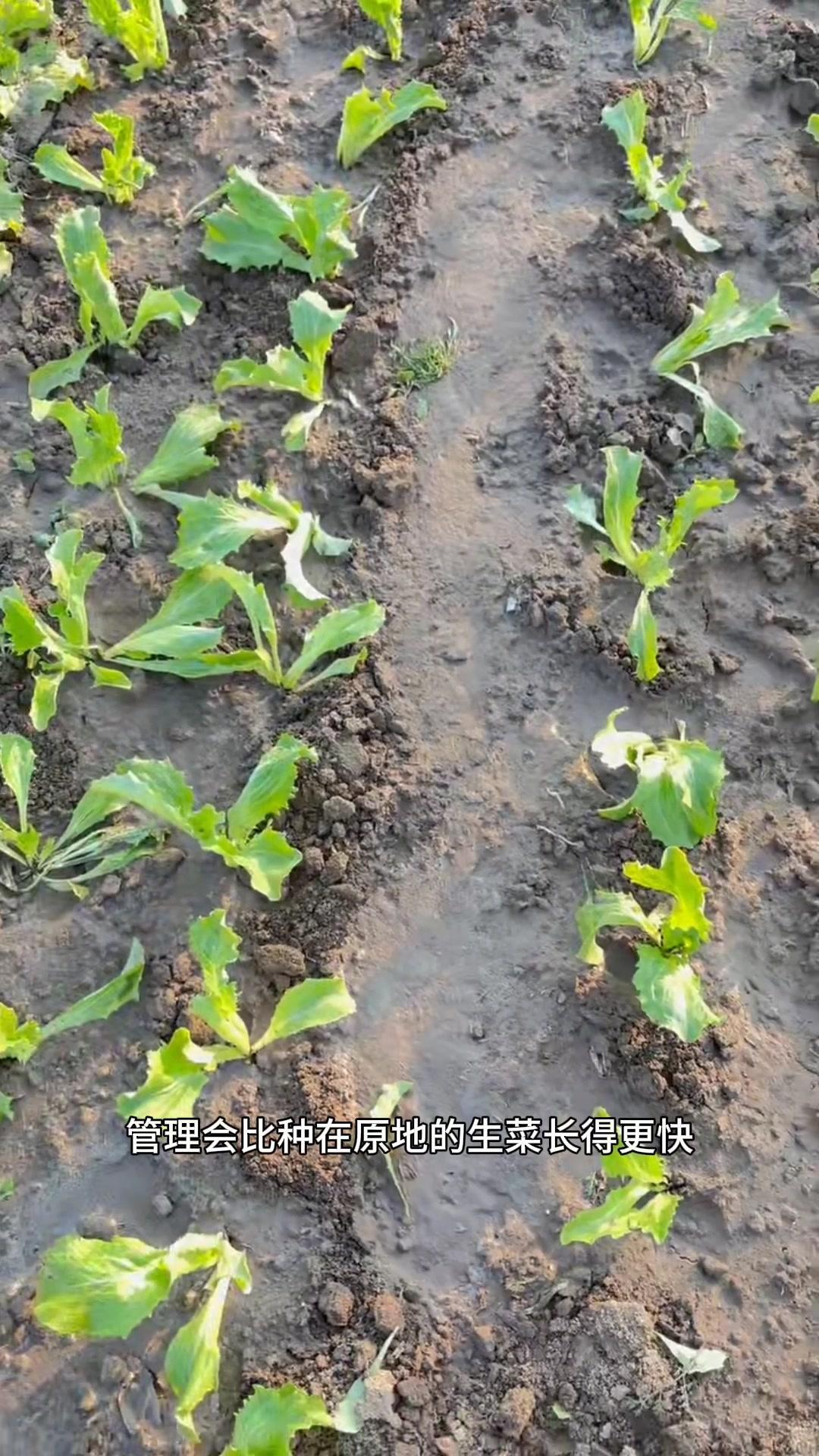移栽的生菜因为空间大,通风好方便施肥管理,会比种在园地的生菜长得更快。