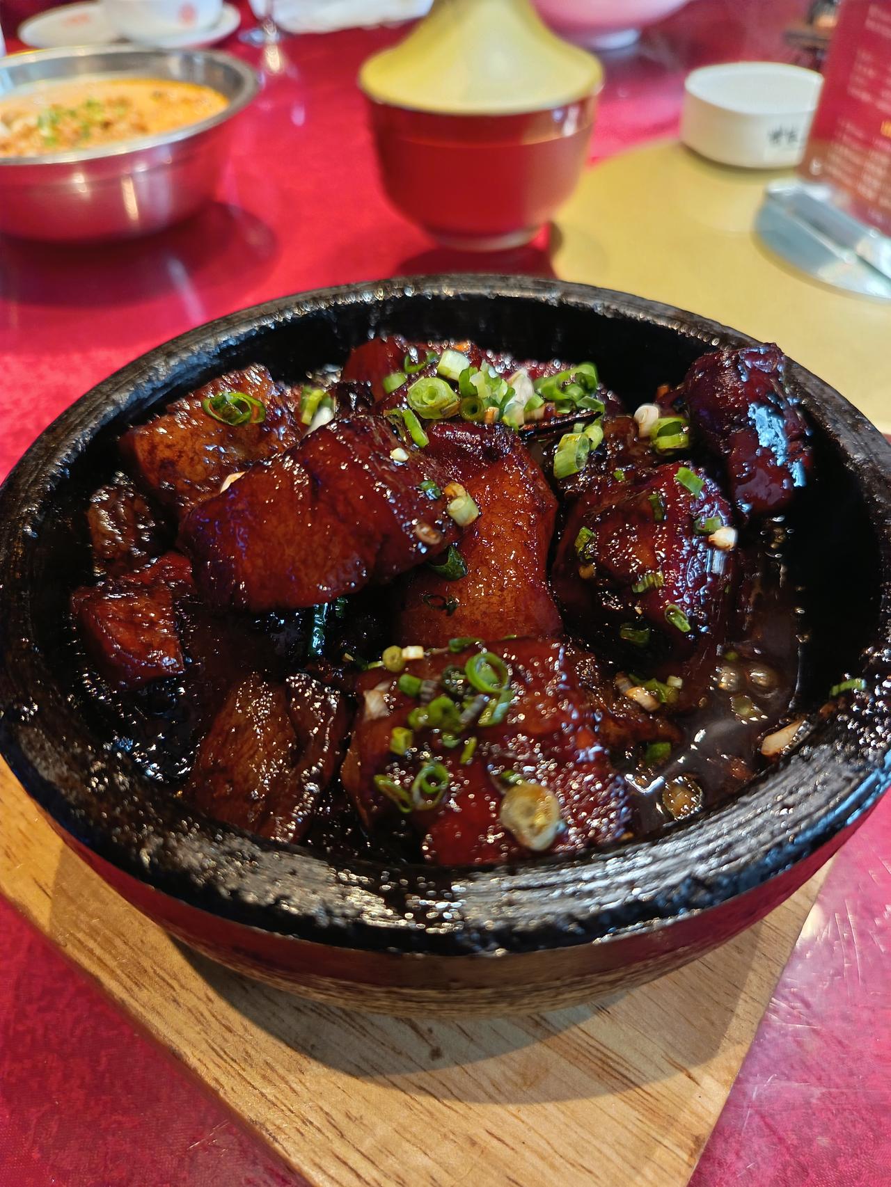 大块的红烧肉,肥而不腻,入口即化,浓油赤酱。