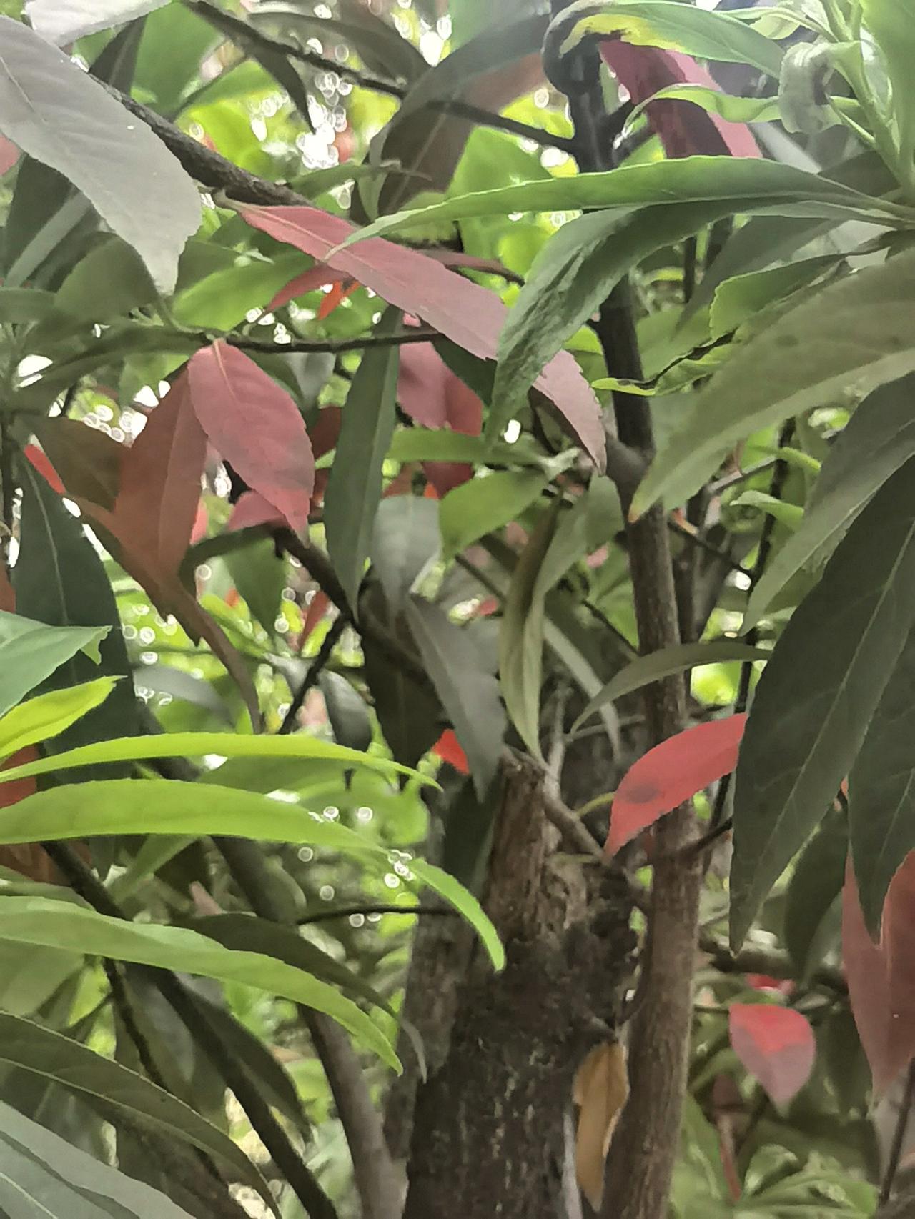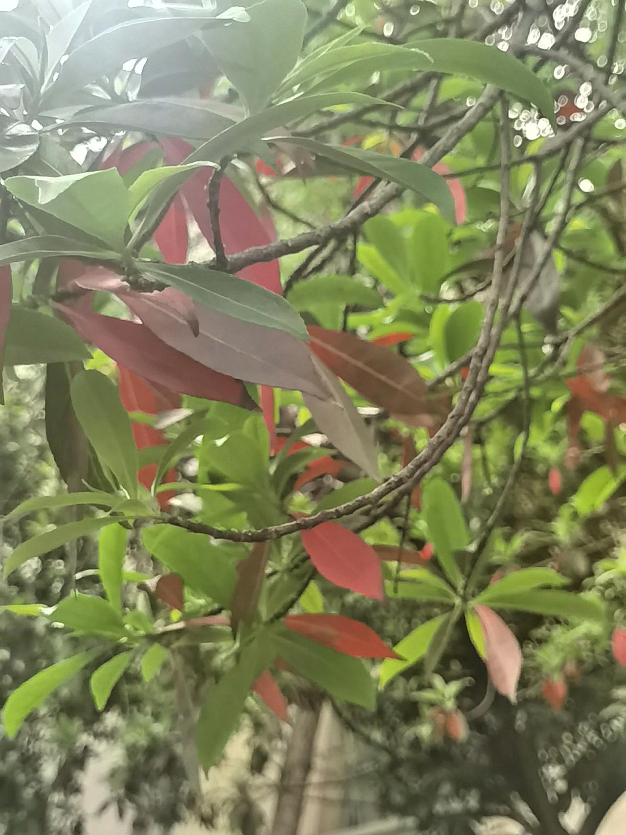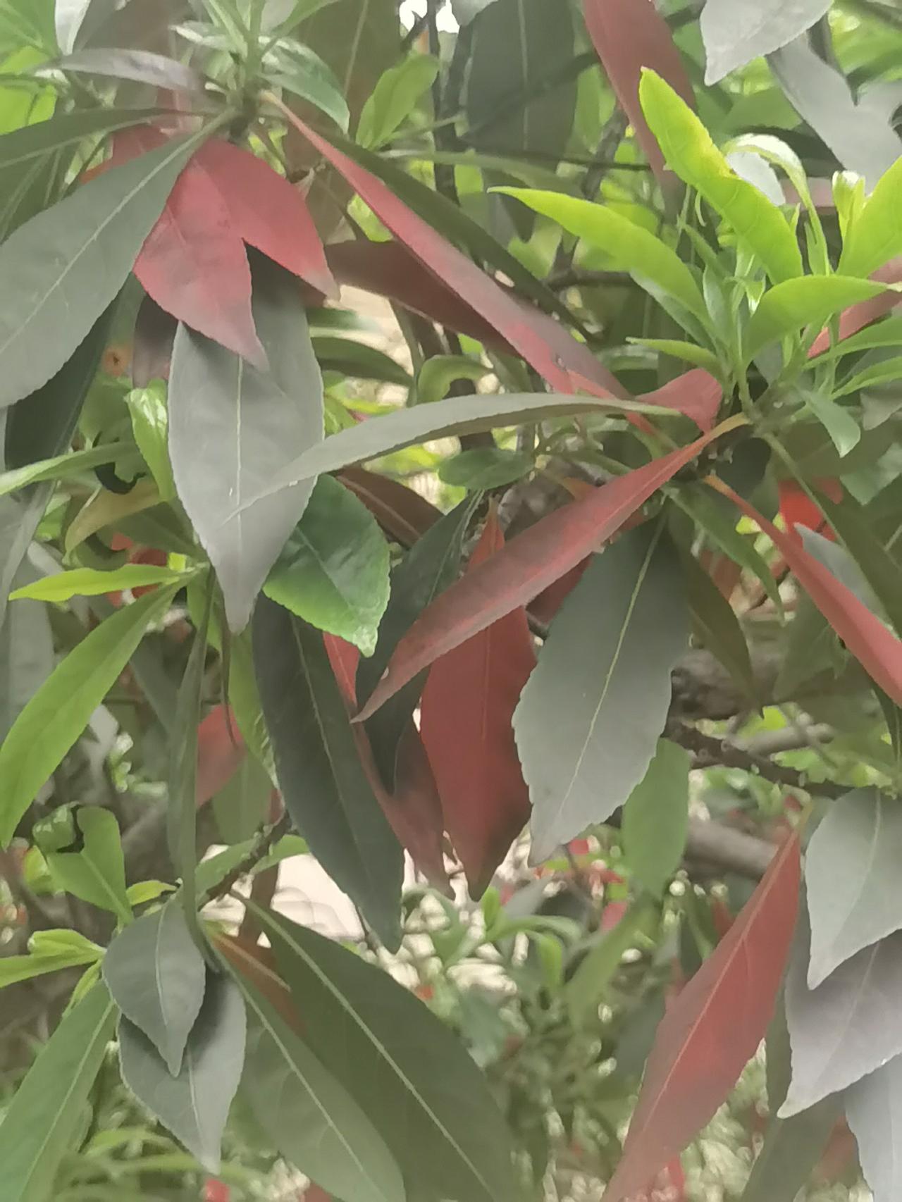 晒图笔记大赛四月春天,一棵大树有两种不一样红绿的树叶,地面落叶都是一片红色的树叶,随手拍照记录春日生活中的美好瞬间。