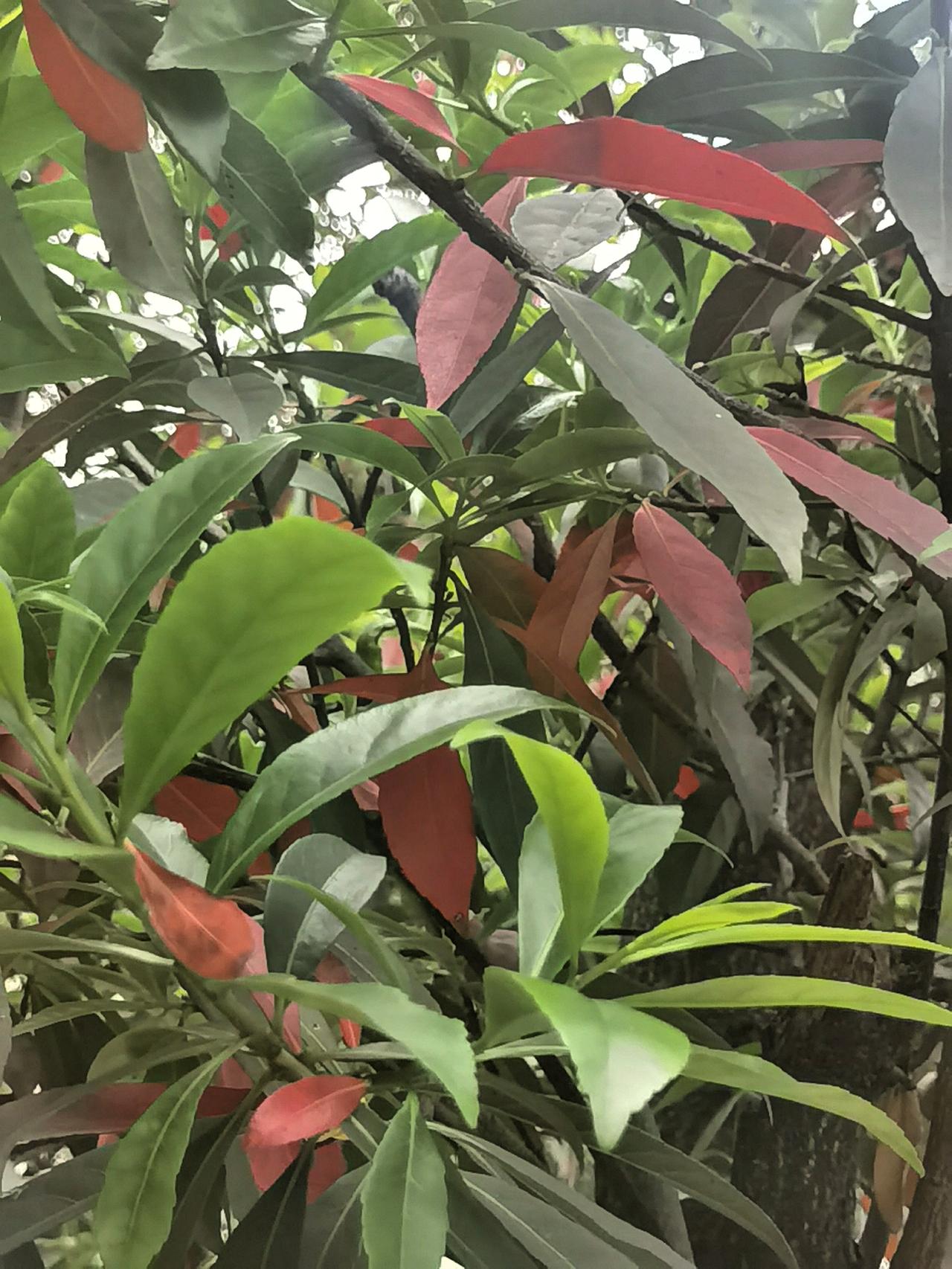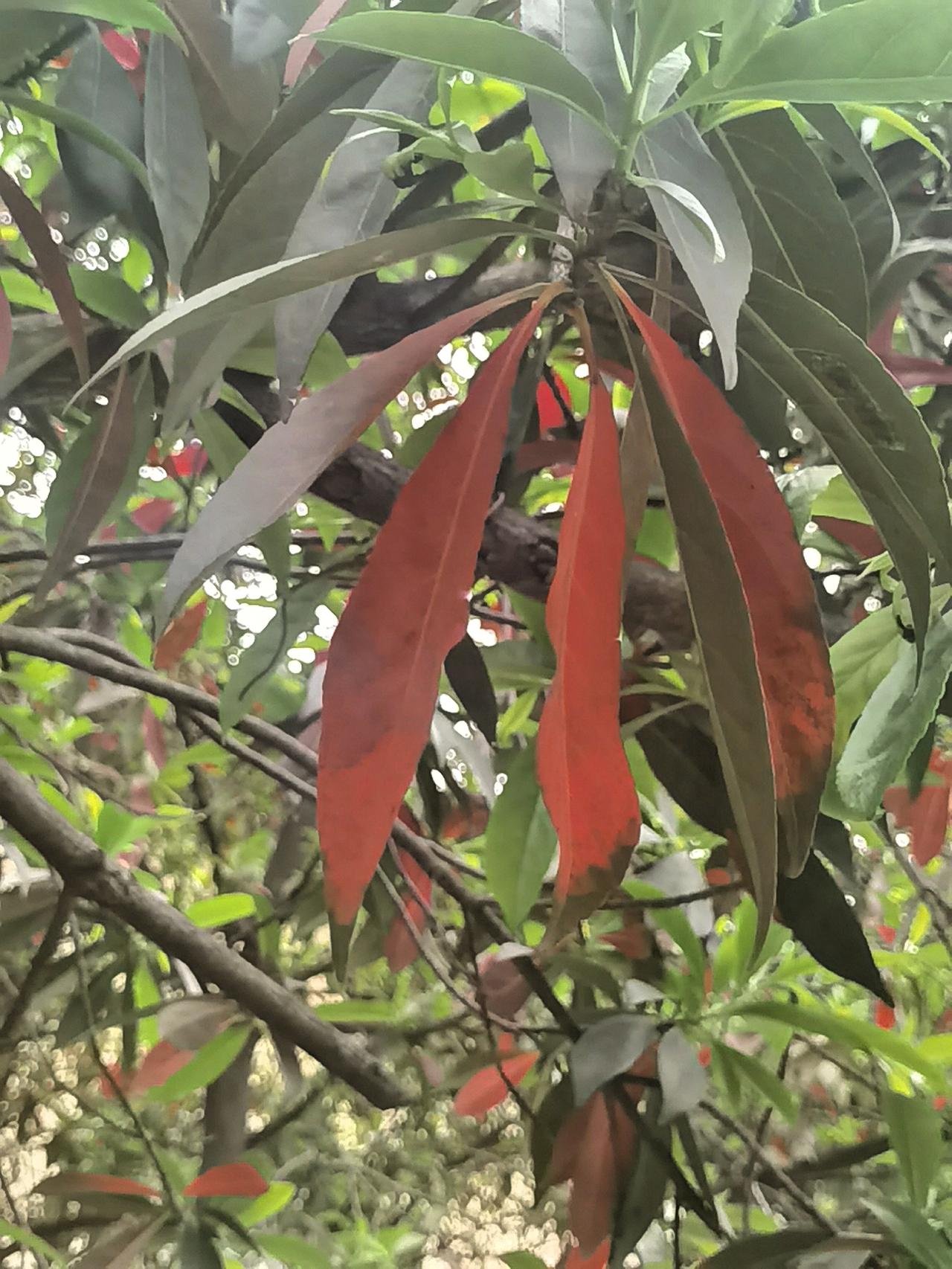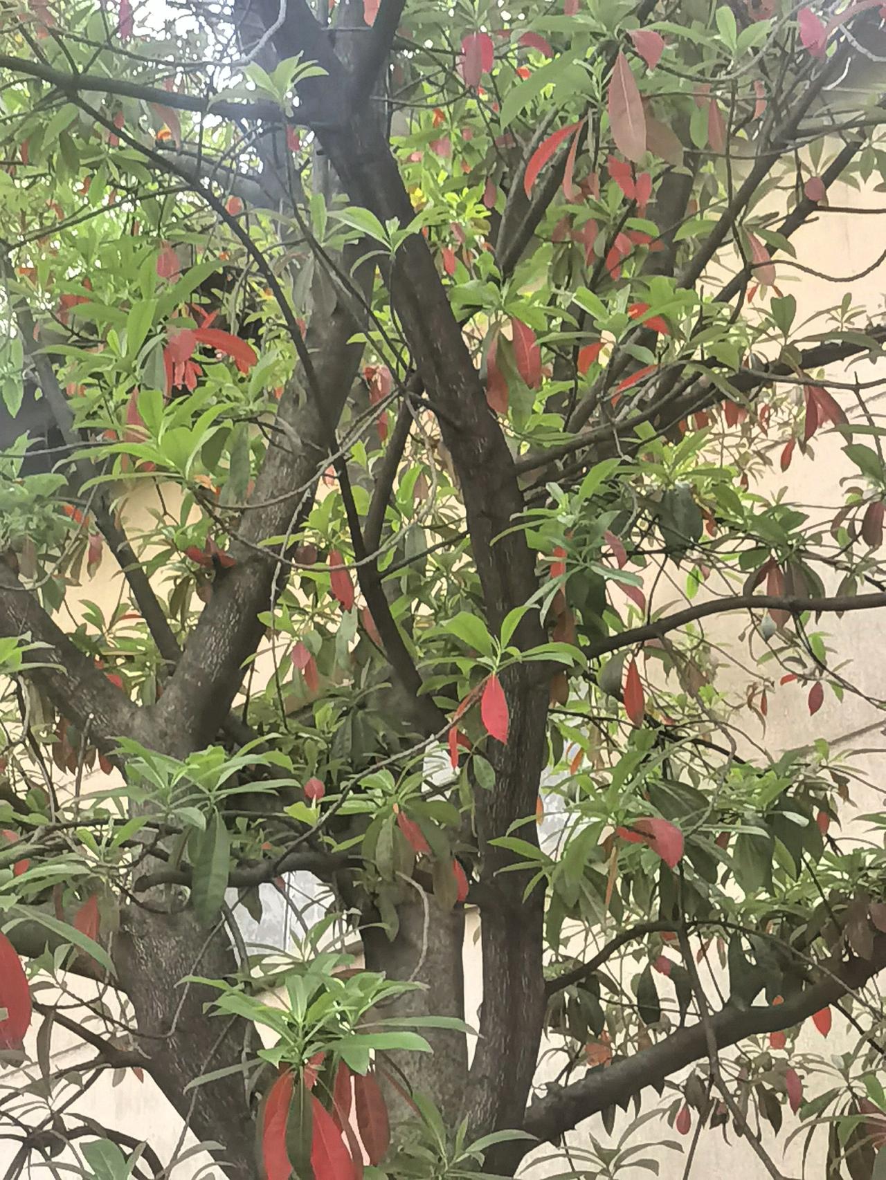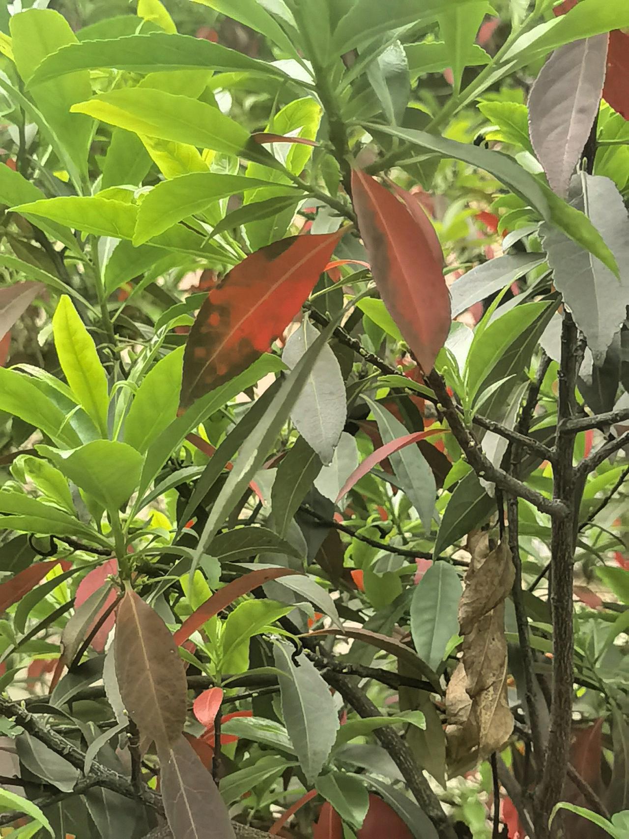 晒图笔记大赛四月春天,一棵大树有两种不一样红绿的树叶,地面落叶都是一片红色的树叶,随手拍照记录春日生活中的美好瞬间。