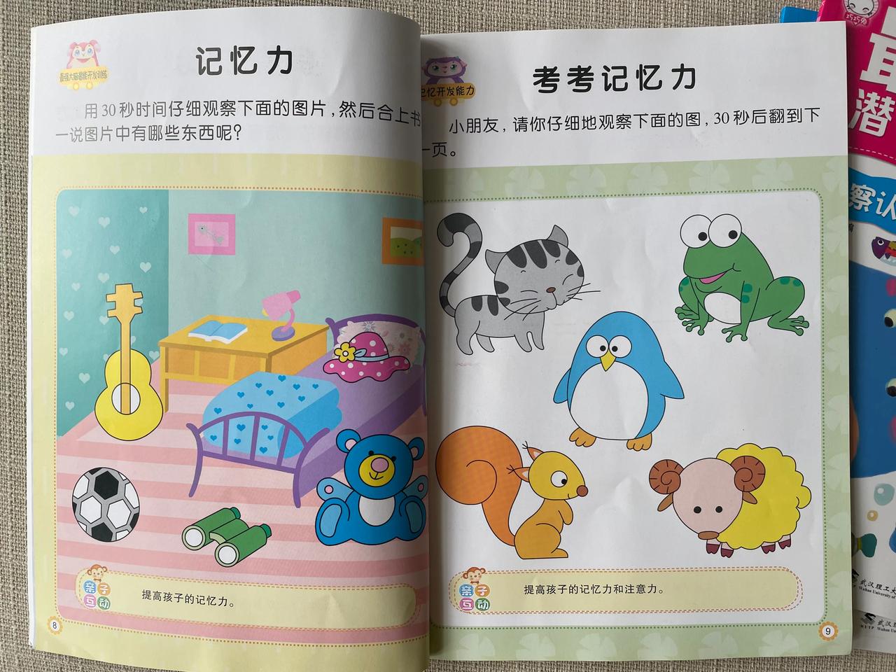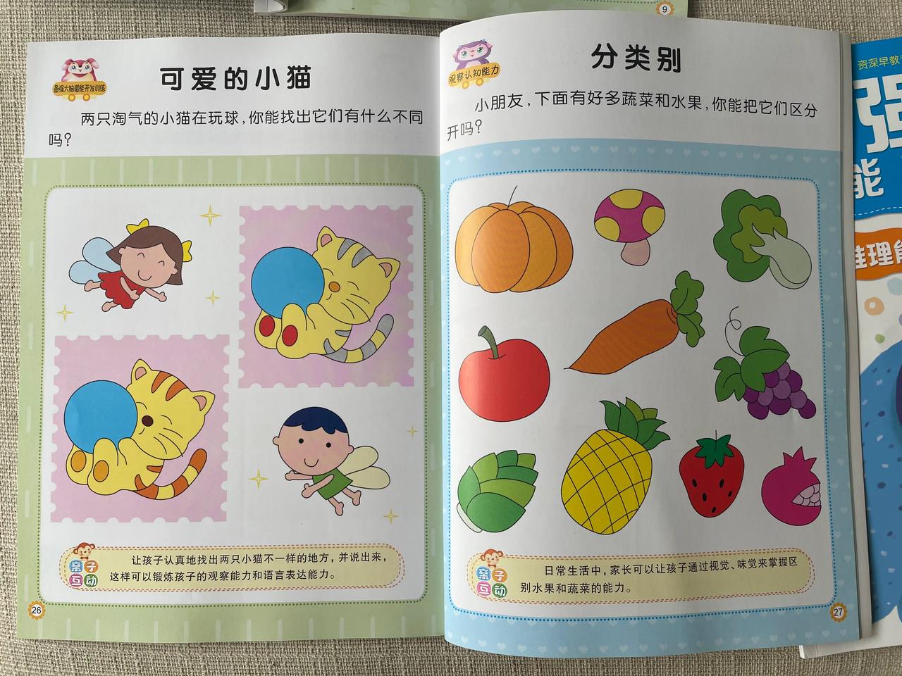 [玫瑰]还有《观察认知》,让孩子从一堆物品里挑出类别不同的那一个,或者两个相似的物品找不同之处。