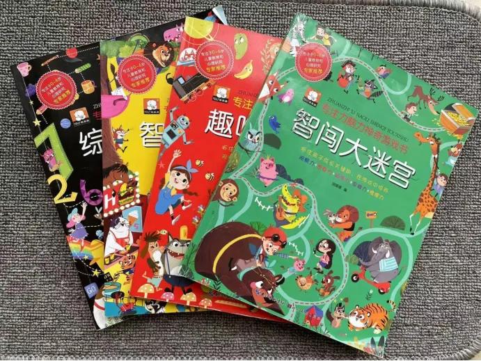 [比心]布妞3岁以后,我给她引入的是《专注力脑力神奇游戏书》。一共4册,包含600多个趣味小图,近100个迷宫游戏、400多个趣味挑战游戏。