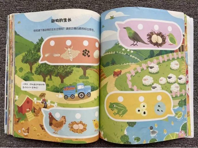 不仅如此,书中还有包含了各种规律,如四季变化规律、动物生长规律等,孩子边玩边长知识。