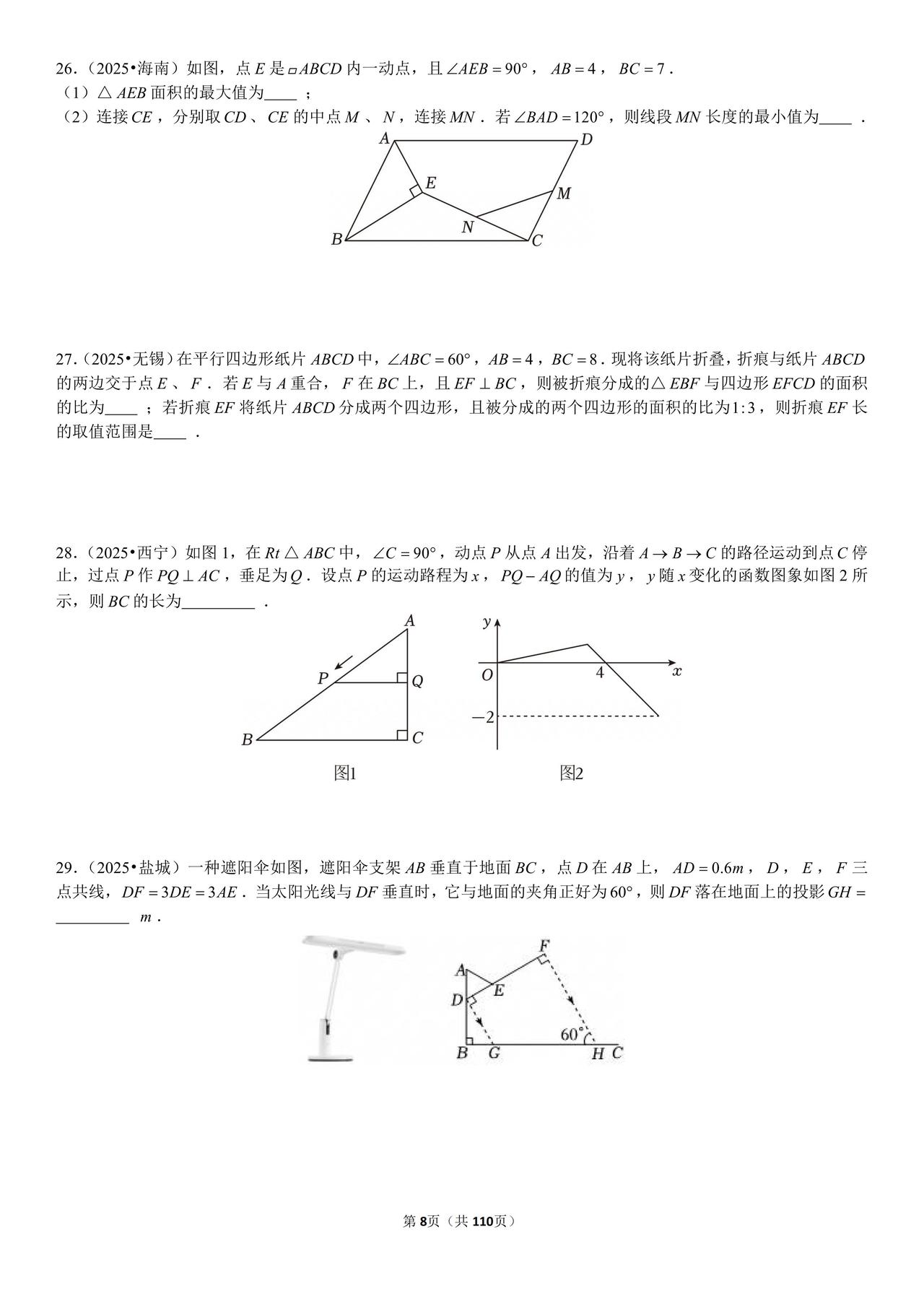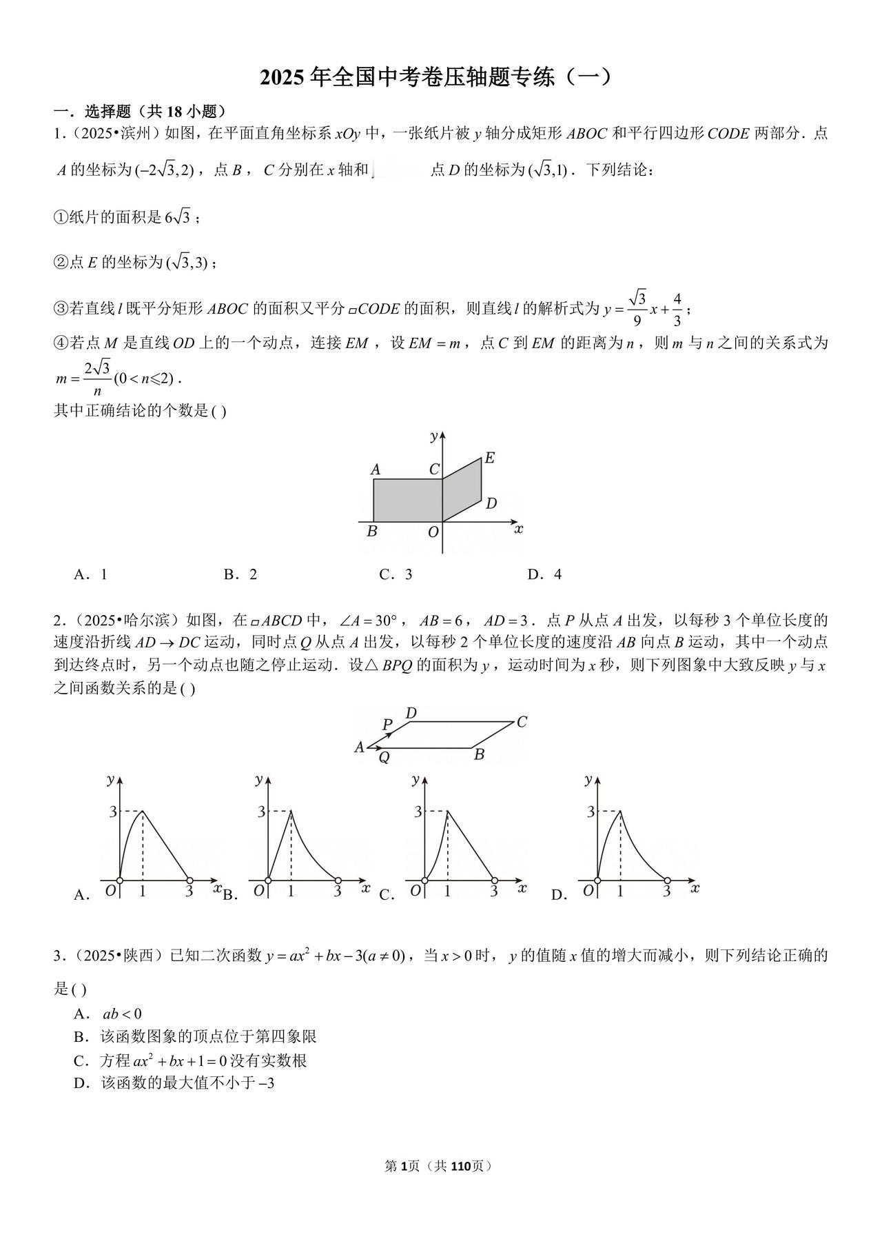 中考数学压轴题精选188题