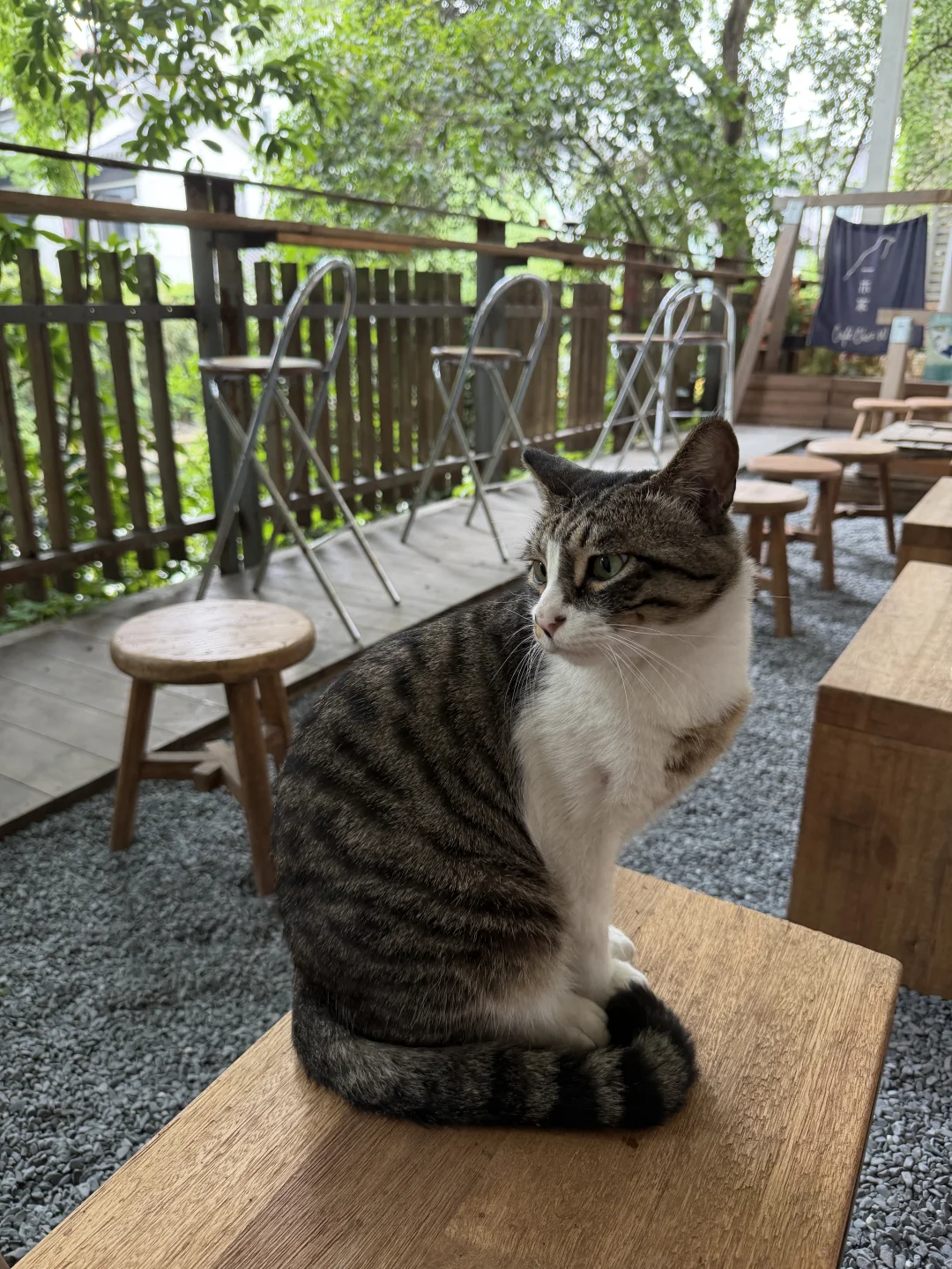 P6:一木家,靠着秦淮河的户外咖啡店,店内的猫咪“八万”属于e猫属性了,见人就亲,店里创意特调较多,整体环境比出品强
