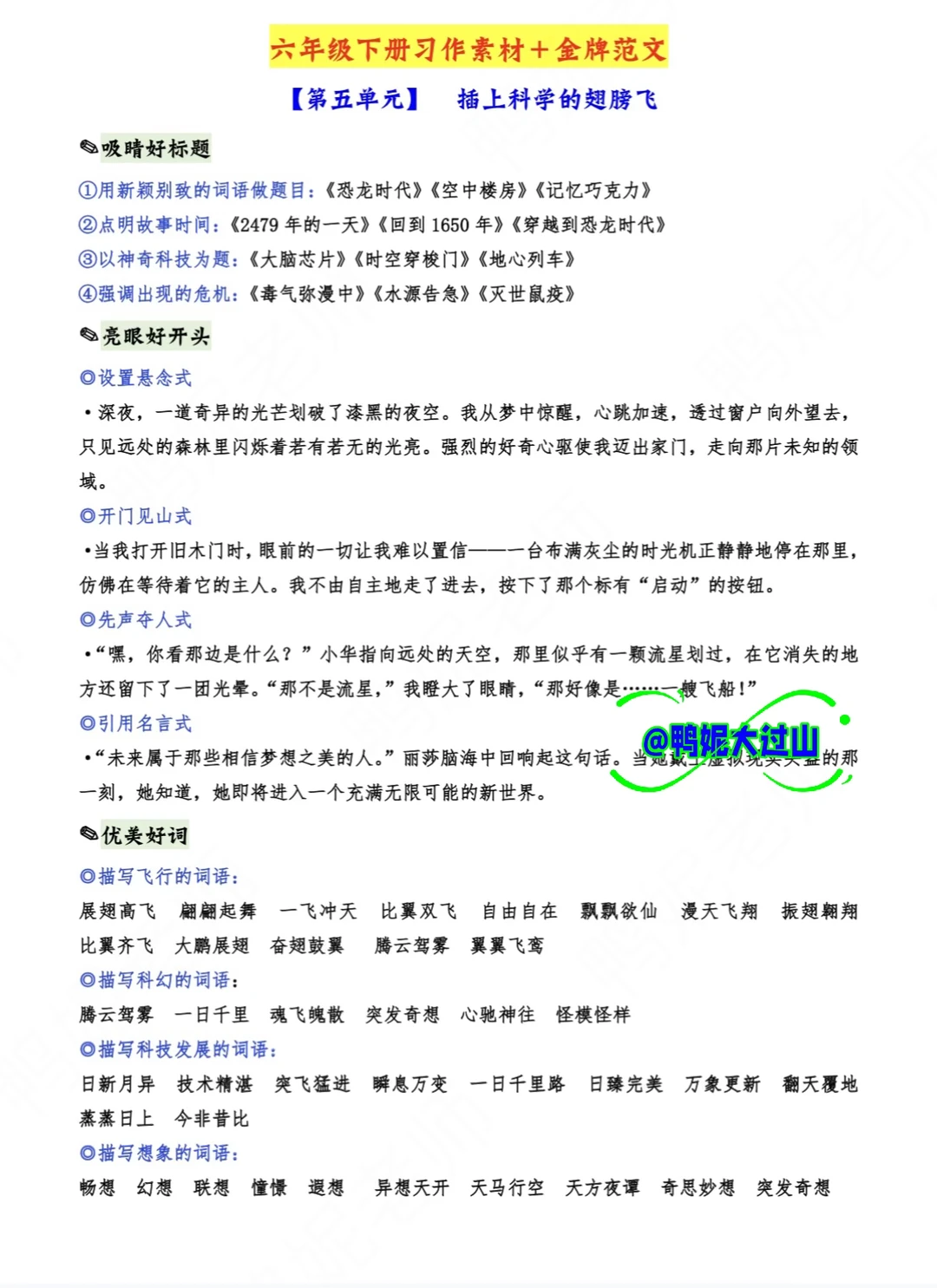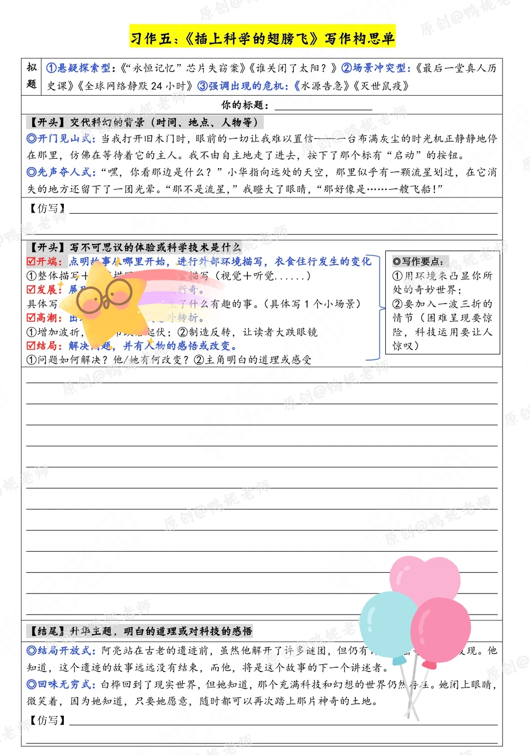六下|《插上想象的翅膀飞》提纲➕支架➕素材