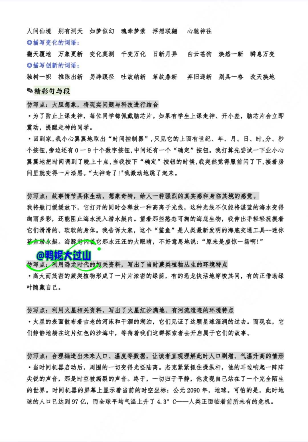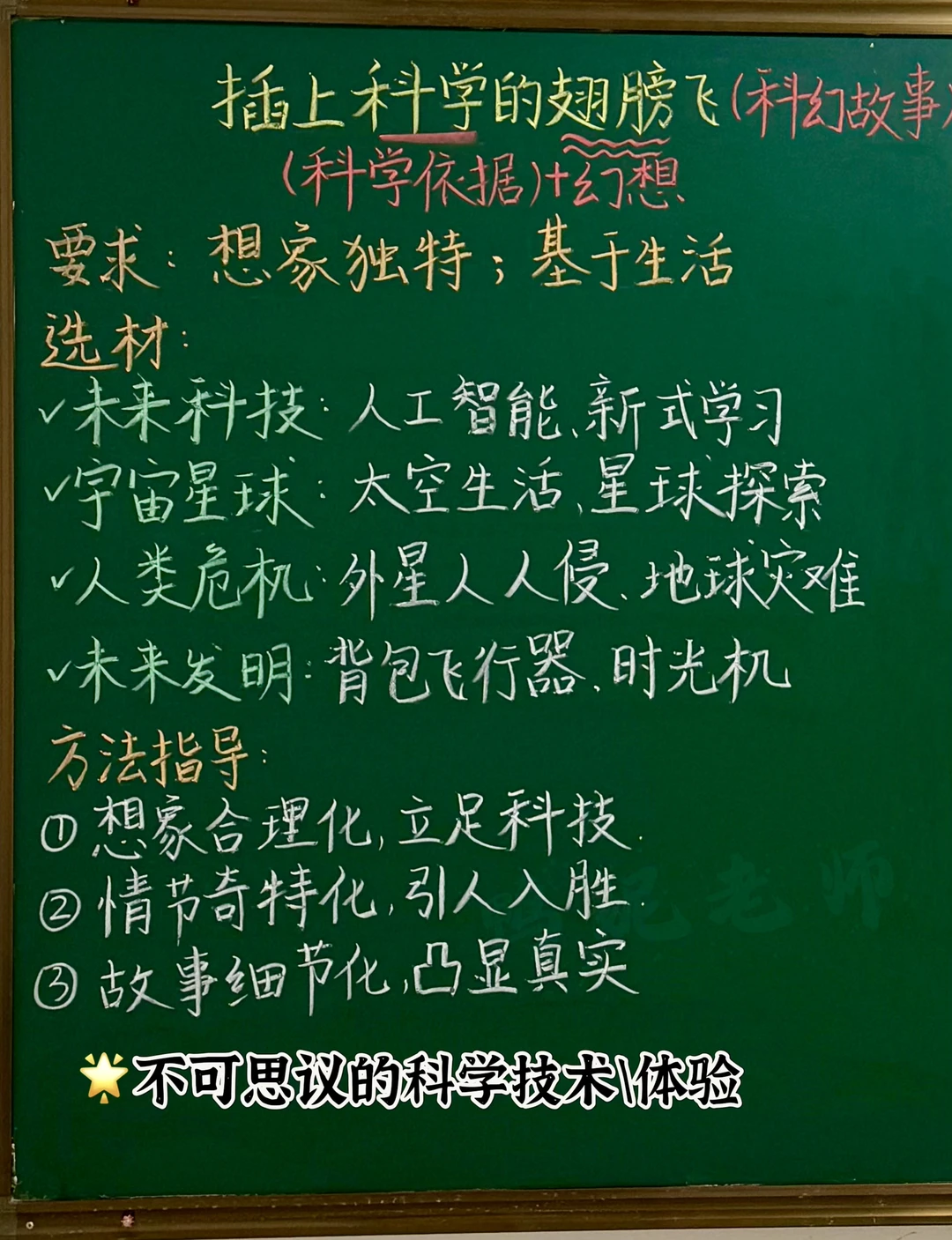 👉这是一篇科技想象文,一定要结合科学技术来写,既想象神奇,又让人看起来信服。学生要大胆放飞想象,让自己的故事奇特、新颖!