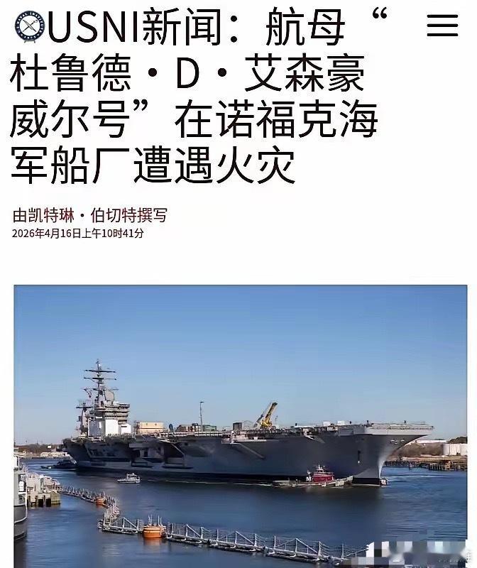 美国的国运这是真崩了呀?福特号烧完之后,艾森豪威尔号也开始烧了!据美国媒体最新报