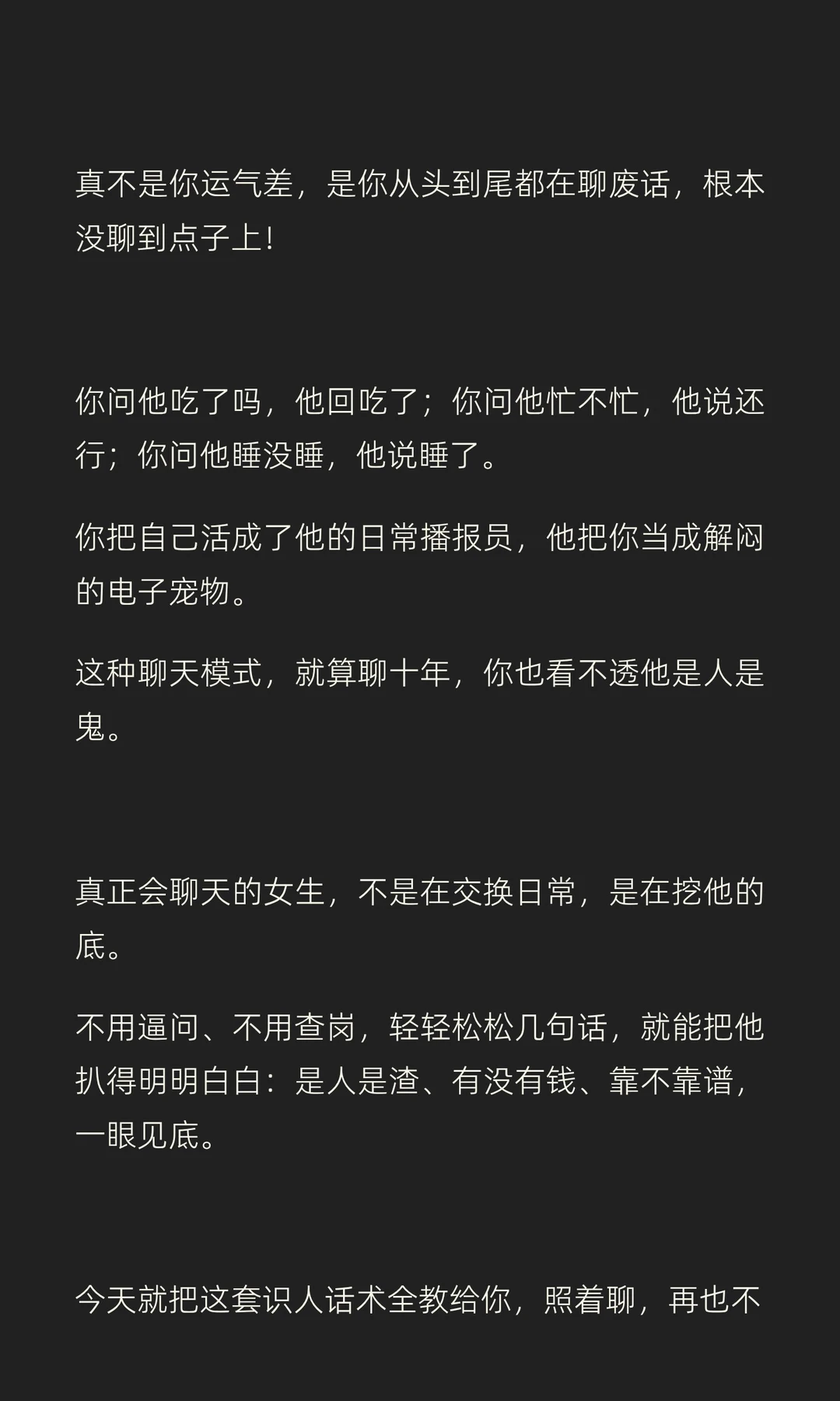 别再瞎聊了!三句话摸清男人底细,别等被骗