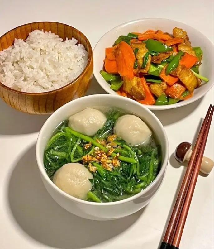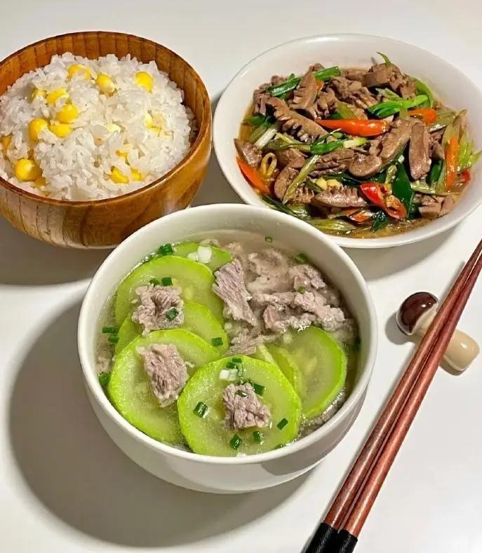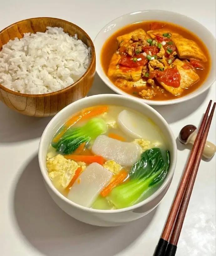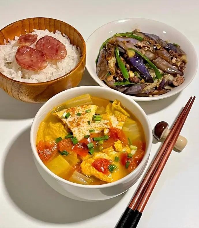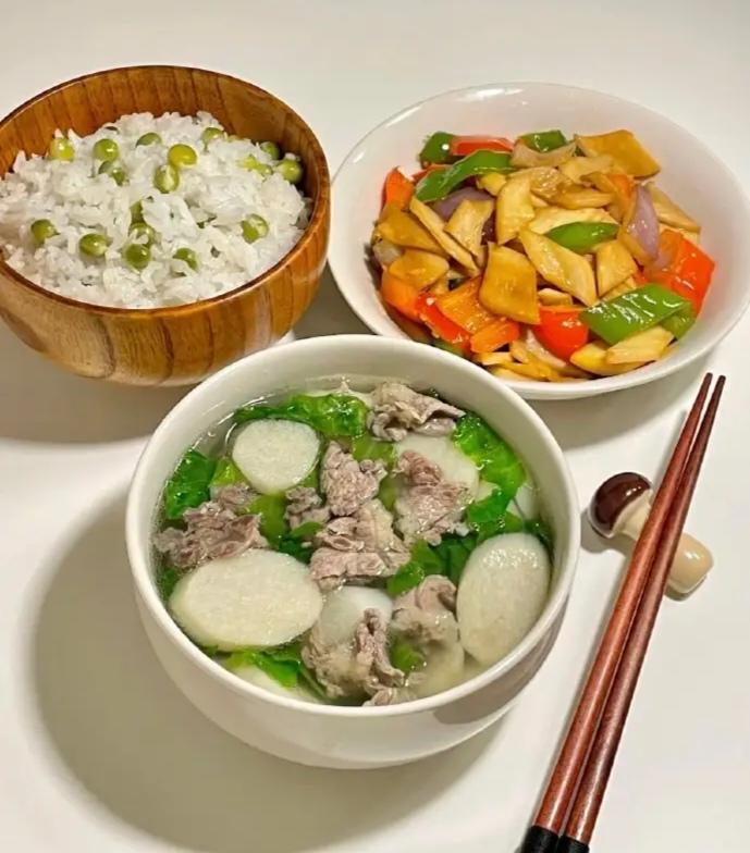 阿姨手艺在线,每顿都安排的色香味俱全,荤素搭配的家常菜看着就香,也特别合丁老师的胃口!