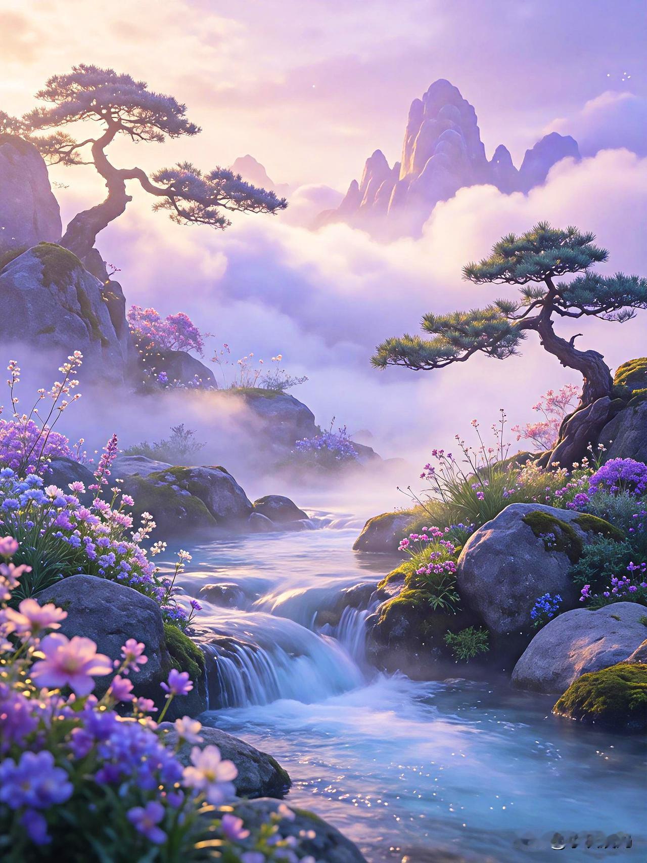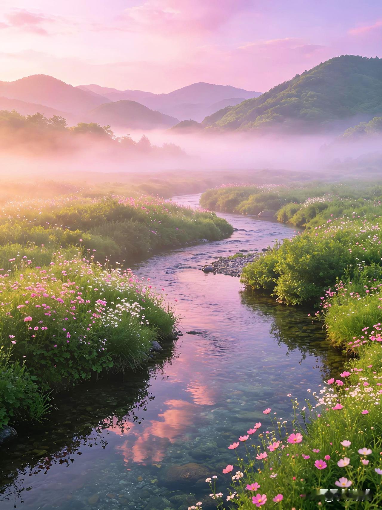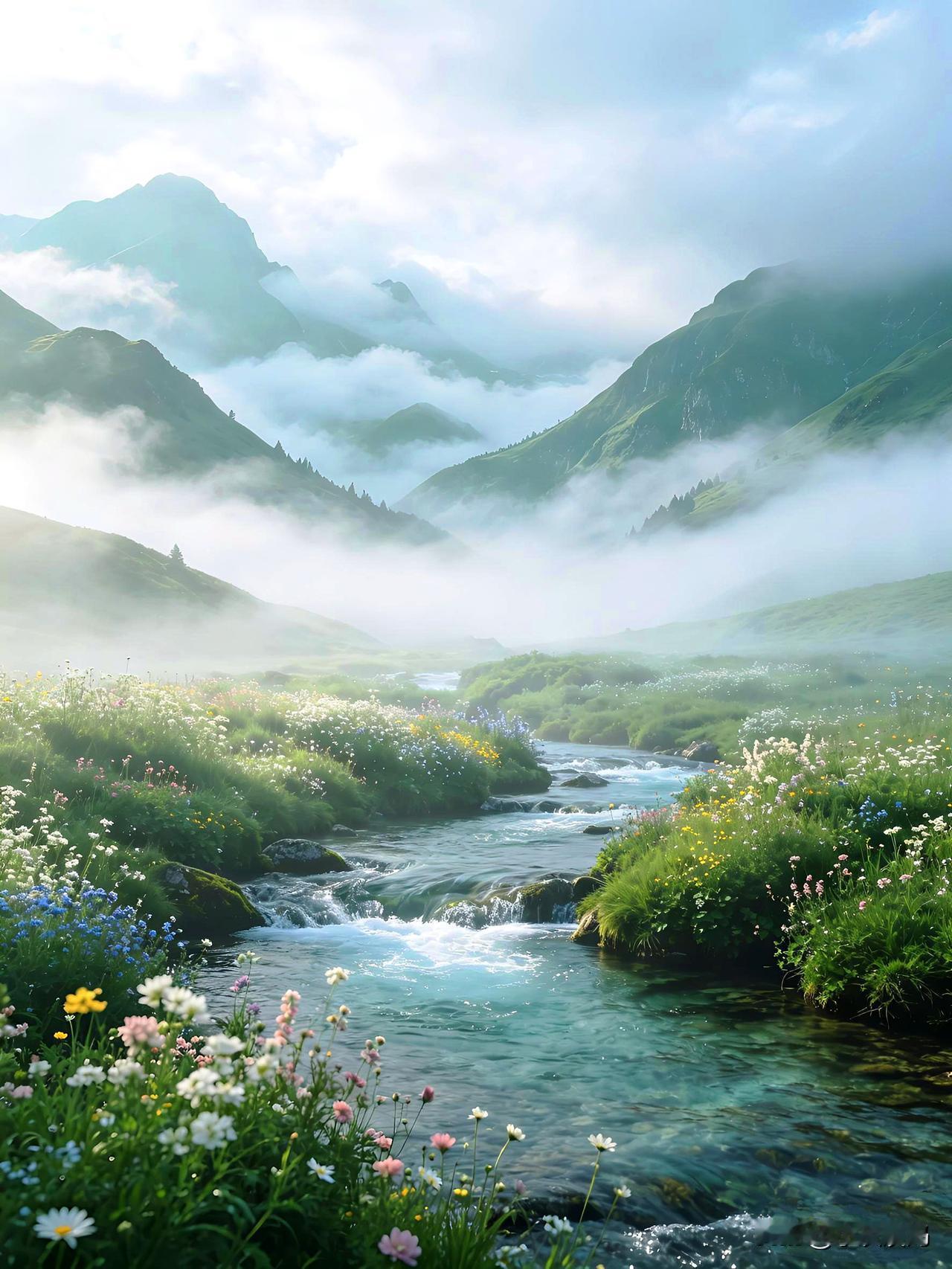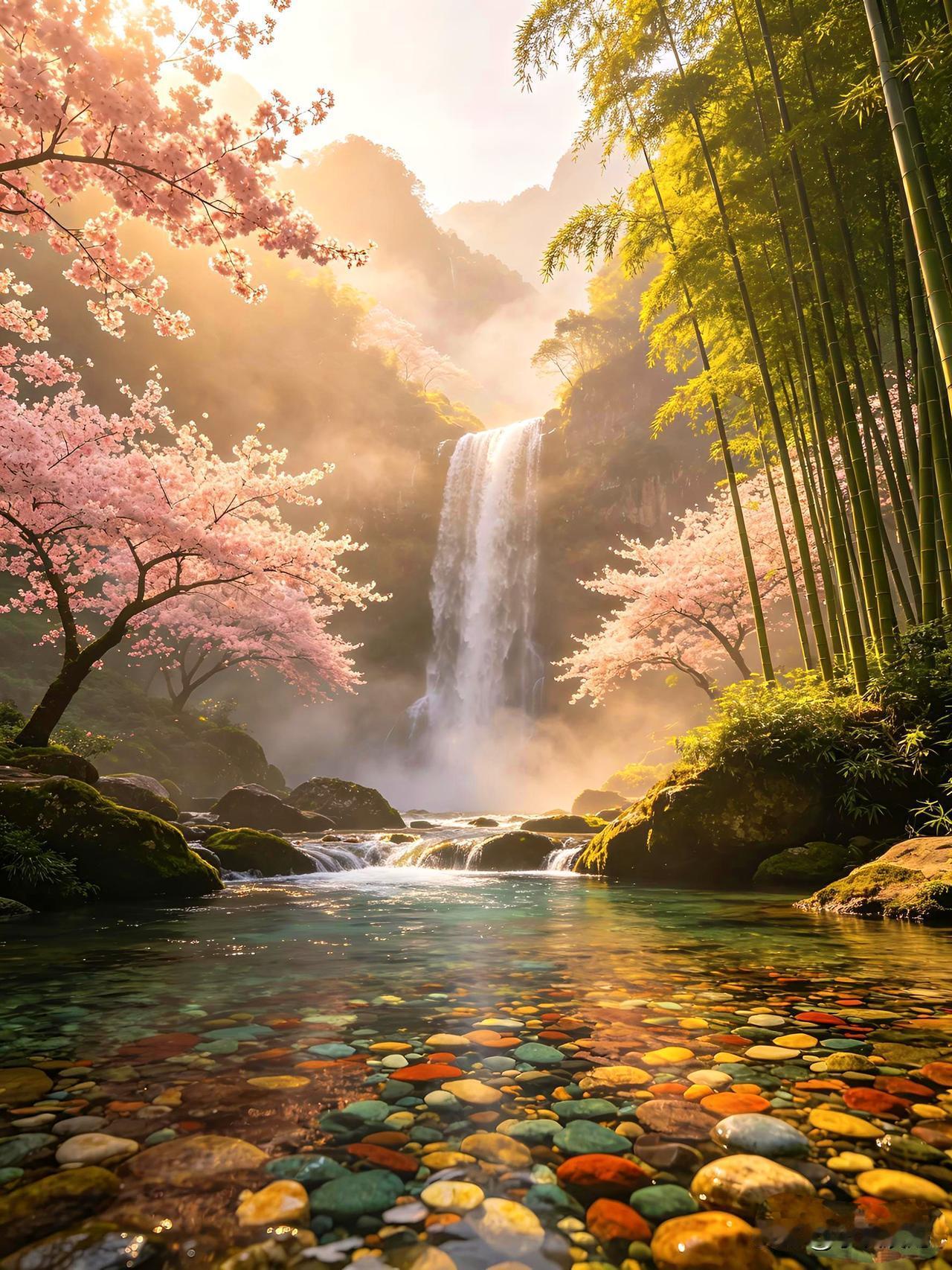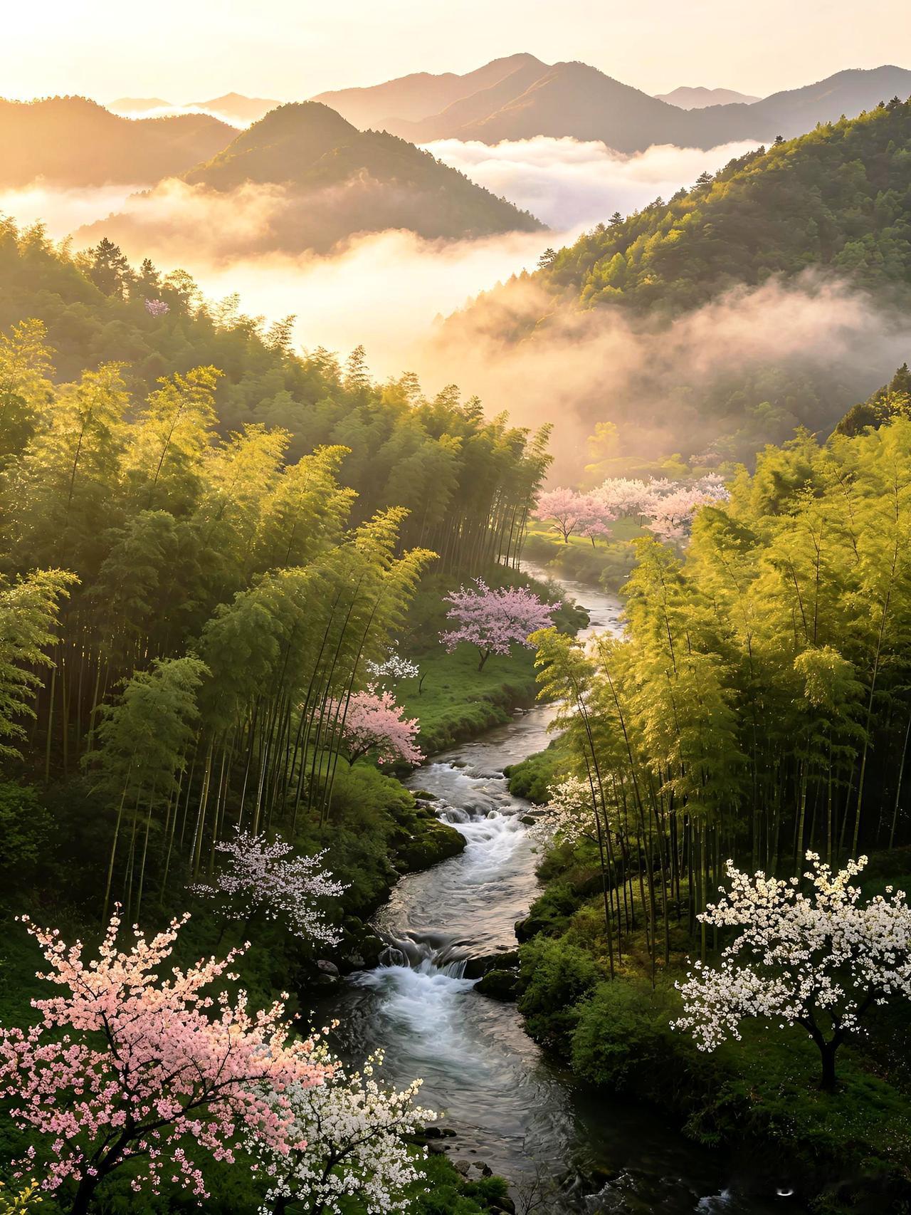 发一张图片看看你们的人间仙境云雾缭绕,山花烂漫,以水为镜,人间仙境!