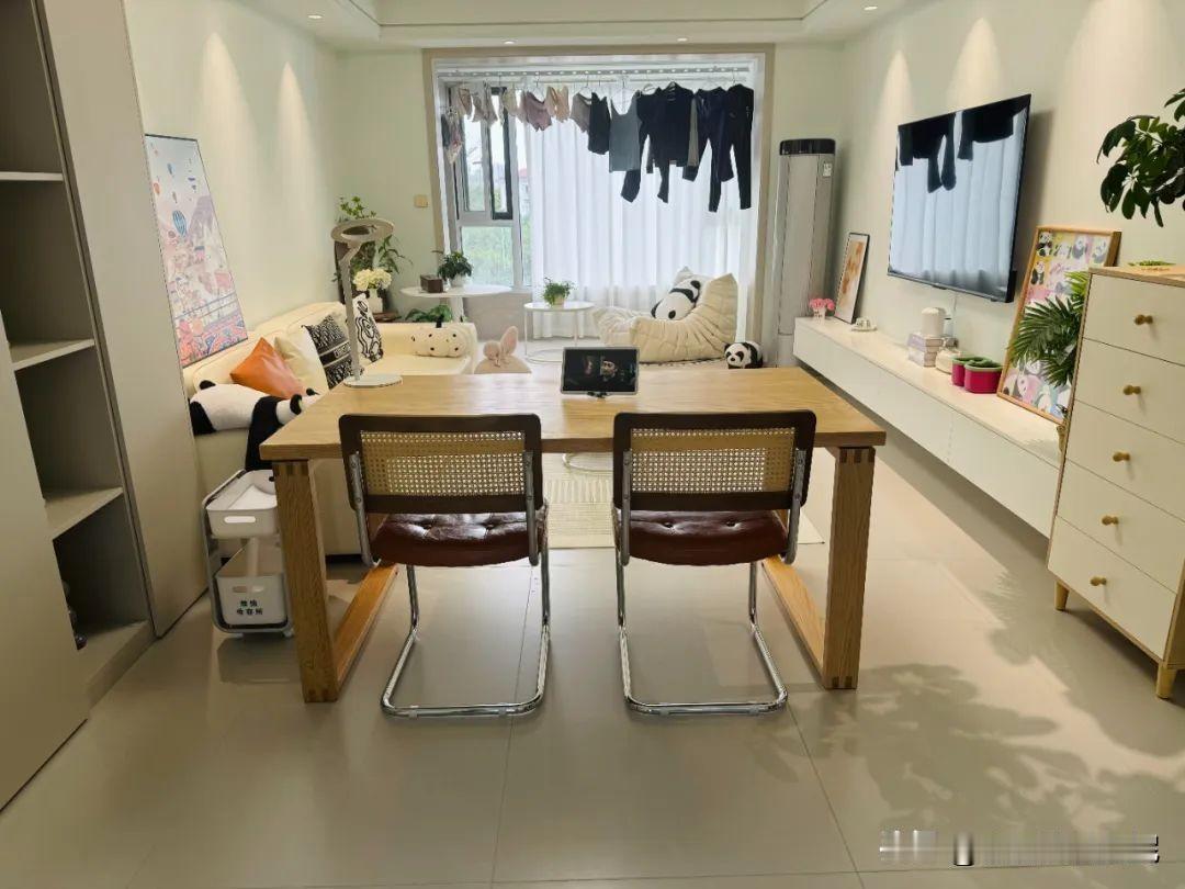 ✅ 定制书桌:利用墙垛高度(80公分左右),定制一块原木桌板,做转角书桌,平时办公、看书,抬头就能看阳台风景,不占空间还实用,腿也能轻松放下✅