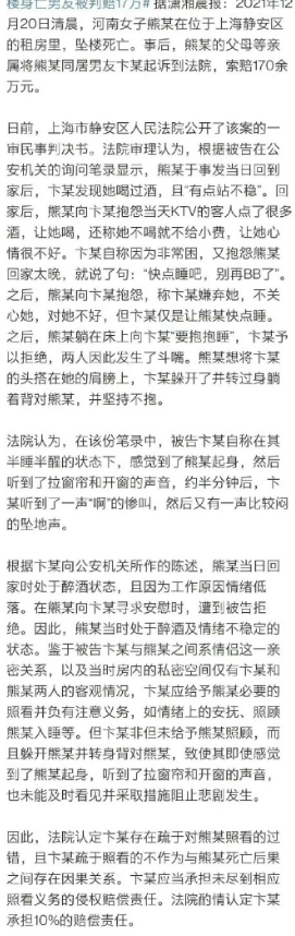放在这个案子里,吵架原因是喝酒,男的说不让女的喝,女的不能喝非得喝,喝了还不让说,说了就跳楼,男的还拽了5分钟,最后还得赔钱。。。