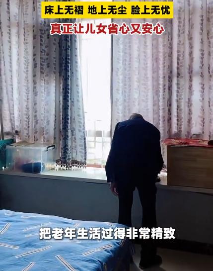 【儿子晒96岁父亲的三无精致生活】96岁老人床上无褶地上无尘脸上无忧 近日,安徽