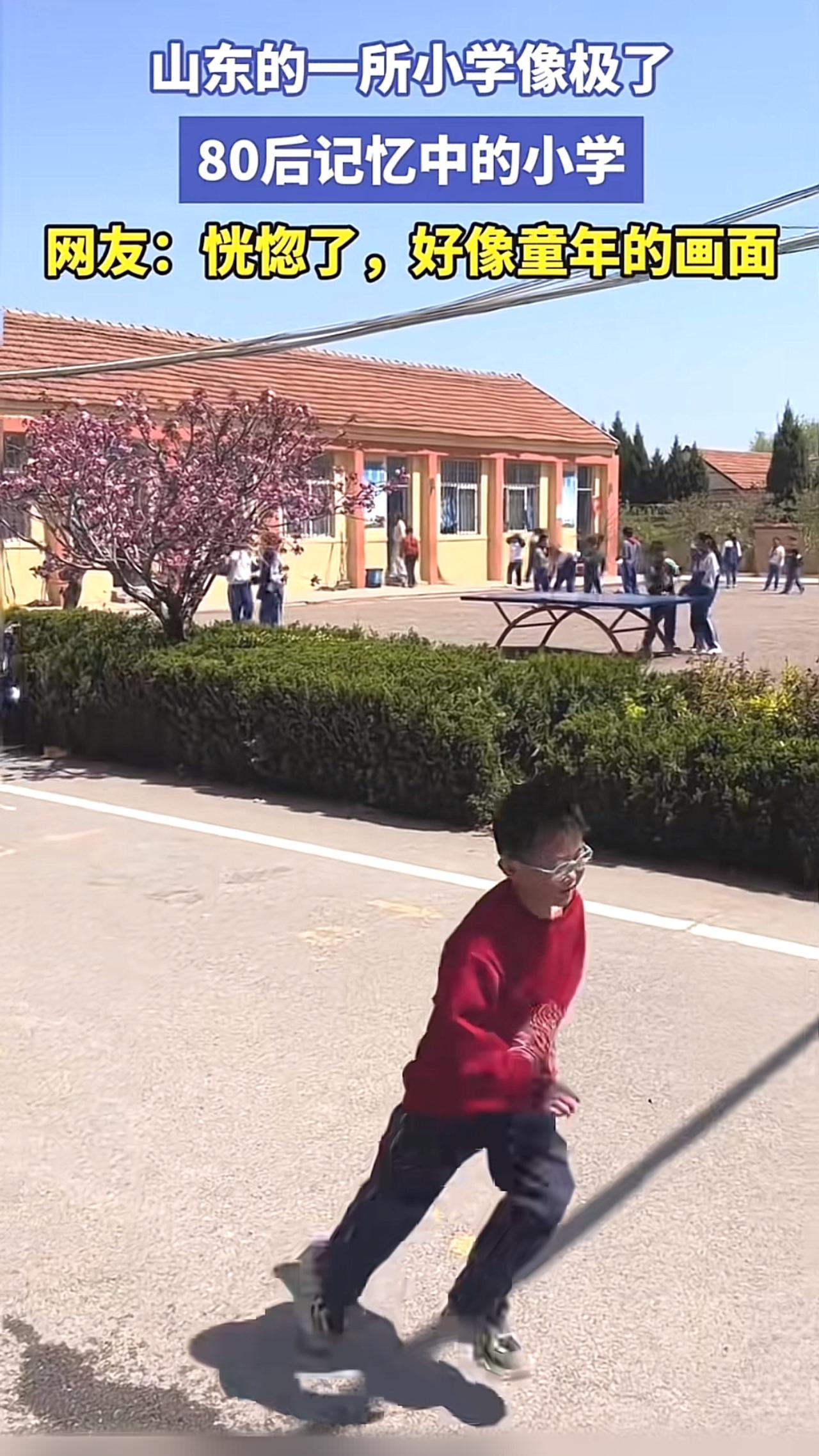 山东一所小学风格现在还是像八零后九零后的小学一样,几排平房的教室,超大的操场满是阳光,小学生下课了可以自由奔跑。