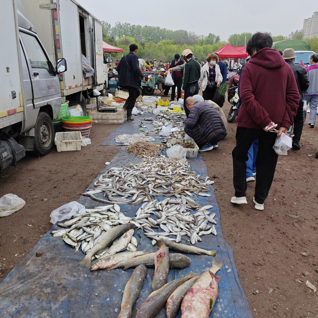在一大姐的摊位上,看到她家的鱼都很新鲜也便宜,据她说是从田横岛船上直接进的货: