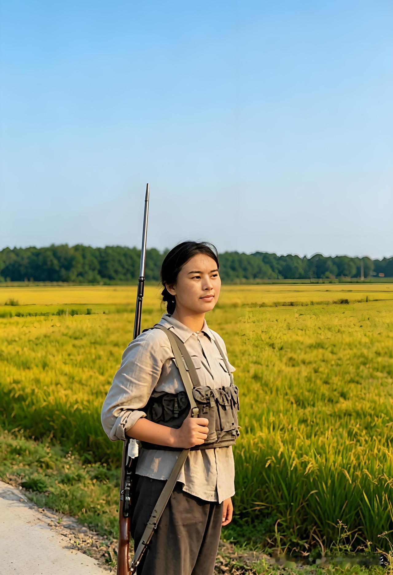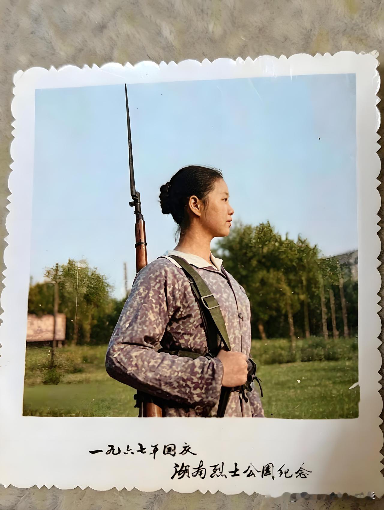 照片上是1960年代的湖南女民兵,穿着朴素的碎花上衣,梳着整齐的发髻,昂首挺胸,目光坚定地望向远方。她肩上背着的是56式半自动步枪?还是53式步枪?有的网友说是土制鸟铳,不知是真是假。