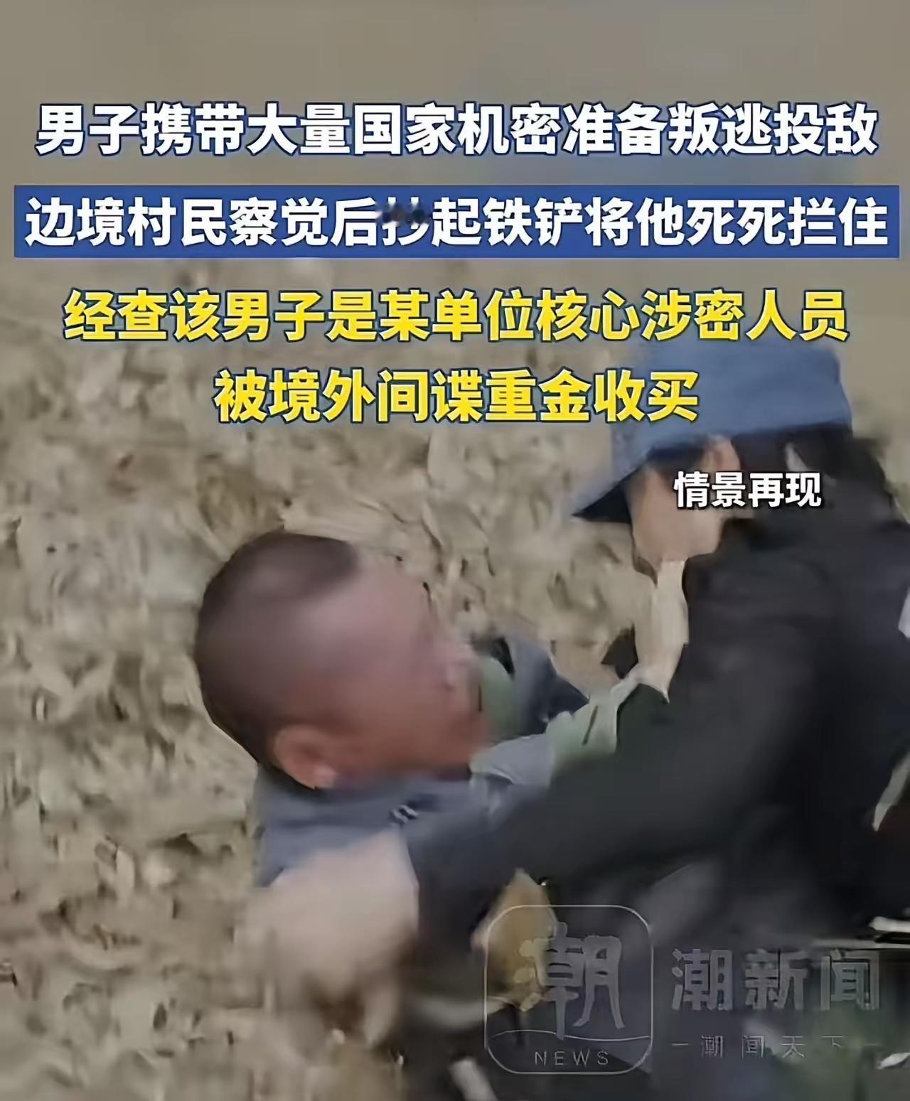 立大功了!男子携带大量国家机密在边境准备叛逃投敌,边境老农察觉异常后,抄起铁铲将他死死拦住!