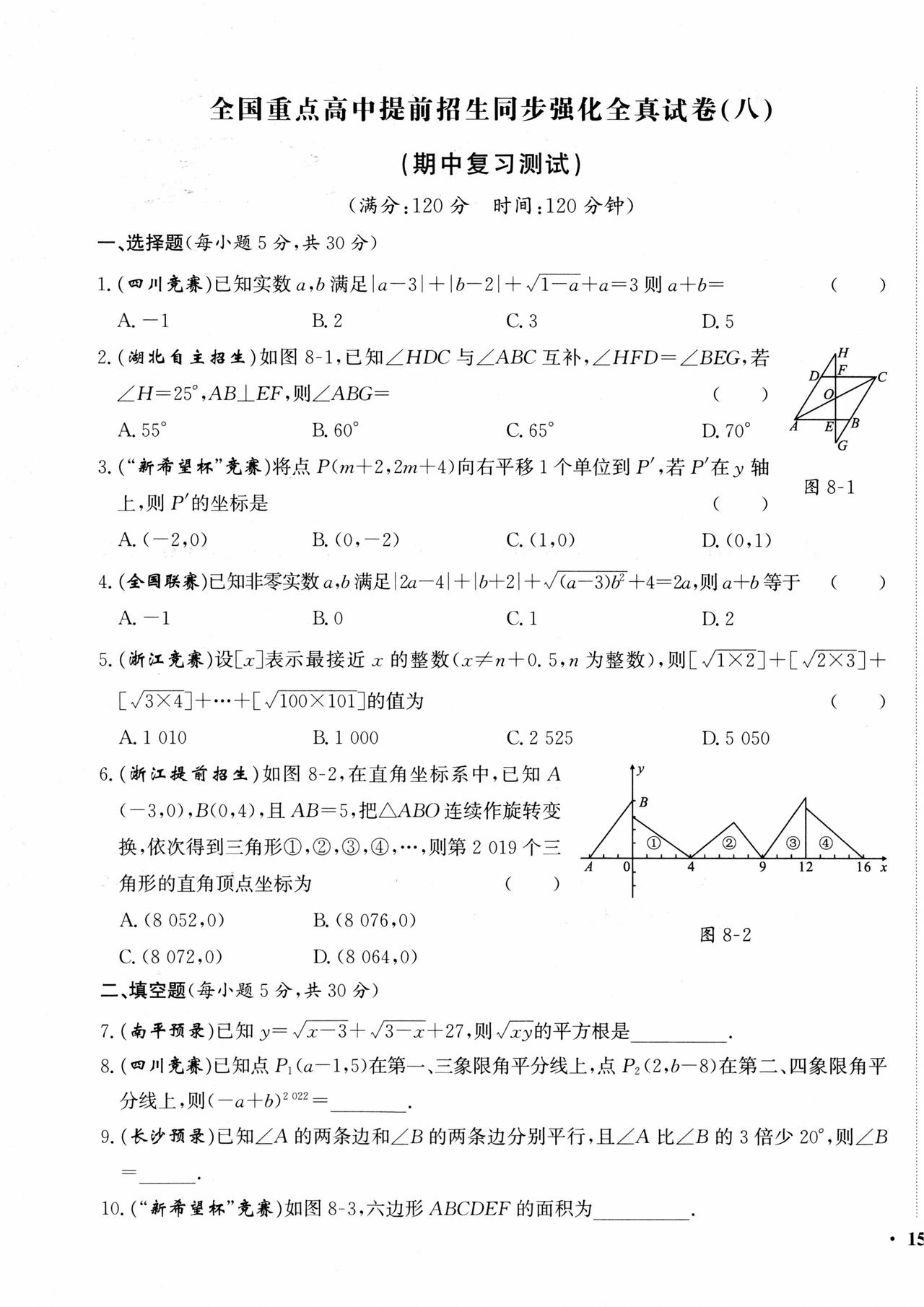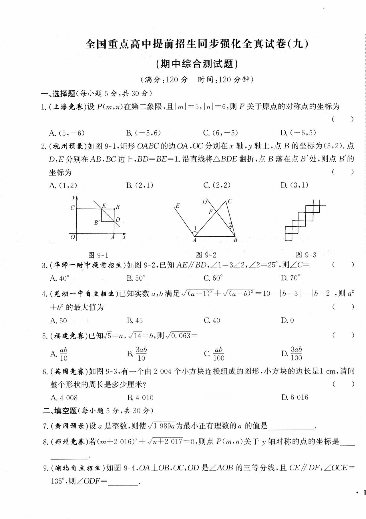 七年级自主招生真题卷汇编