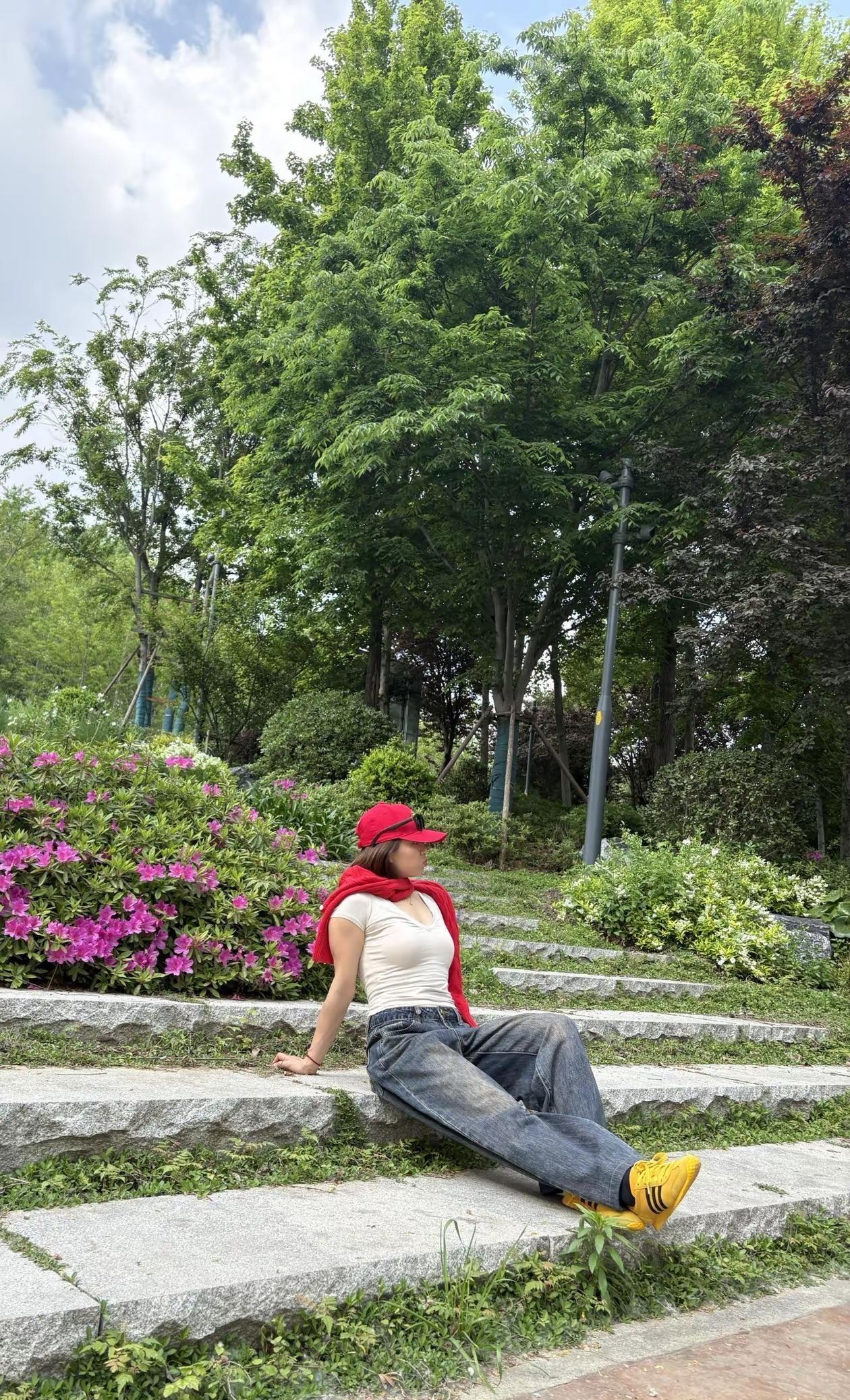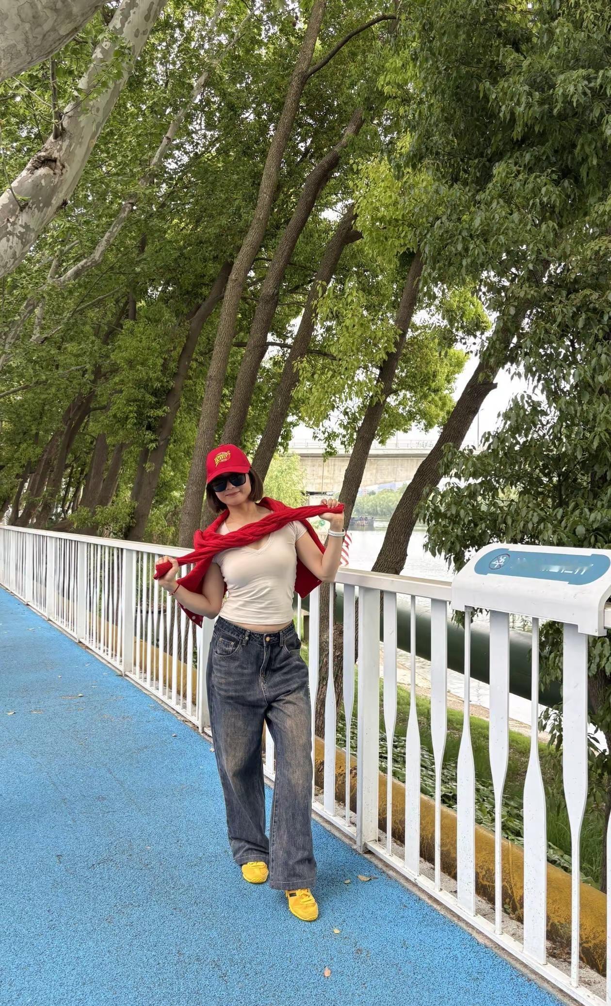 夏日清新穿搭,帽子和墨镜的完美搭配,运动休闲两不误,活力满满!🌞👒🕶️运动